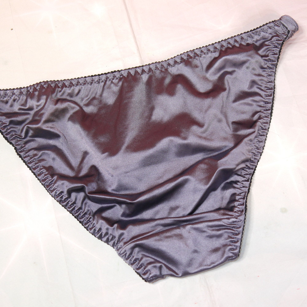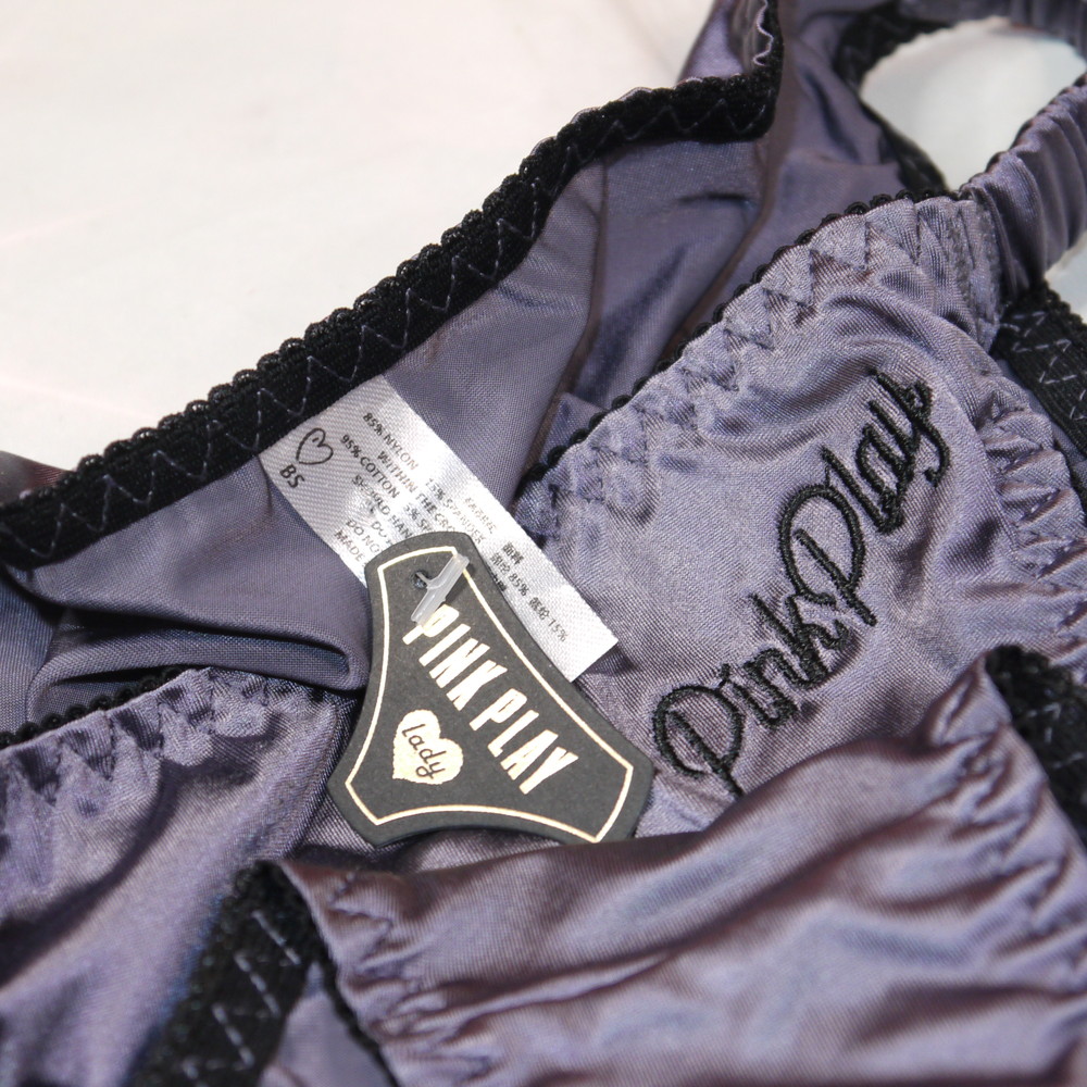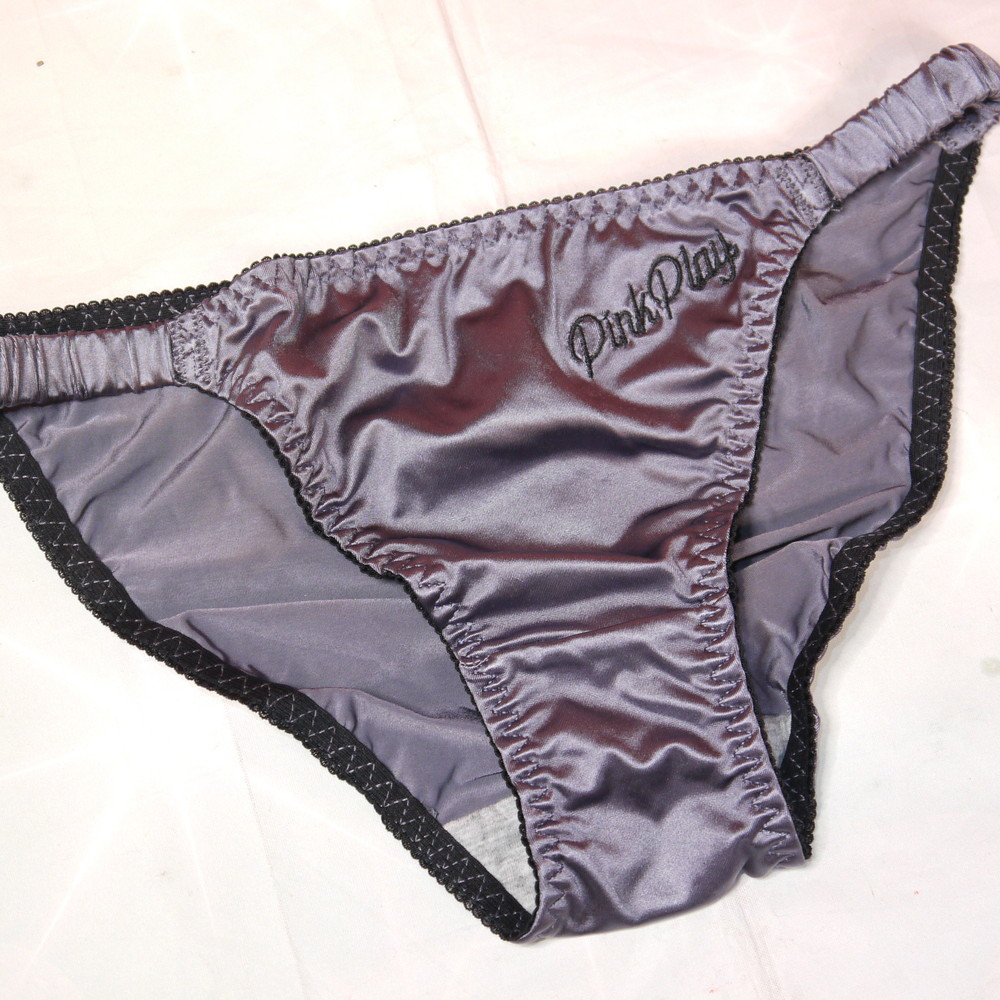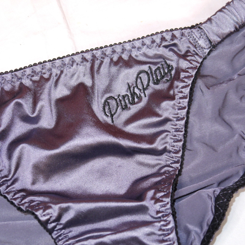 【タグ付】PINK PLAY:Mサイズ ★ 甘とろサテンのグレー シルク調 ギャル ビキニパンティ