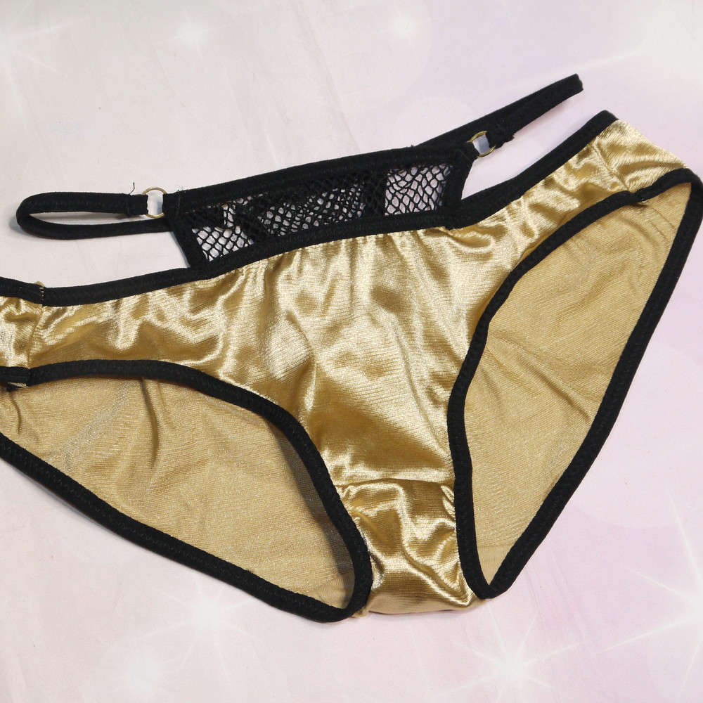 【Bランク/新古美品】プレジャージーン:Mサイズ ★ つるつる光沢×ゴールド 希少二重構造 ダンサーGAL系 パンティ
