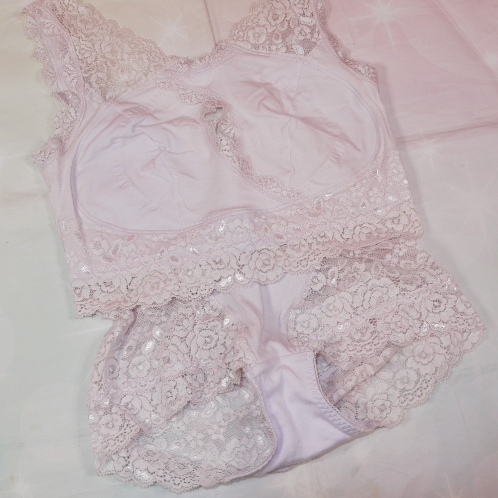 【BCランク/BK43-】Exabra:M:BCカップ程 ★ 清楚なライトピンク×レトロ薔薇レース 50代奥様系 PBセット