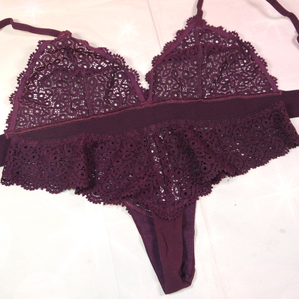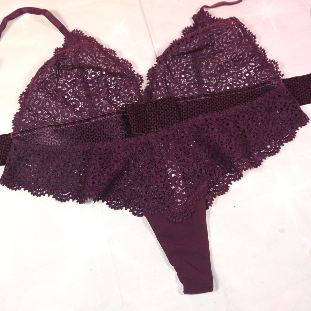 【Bランク/新古美品】PRINCESSE:B90 XXS:Mサイズ程 ★ 高級感の深紫×透かしレース 胸透 T PBセット