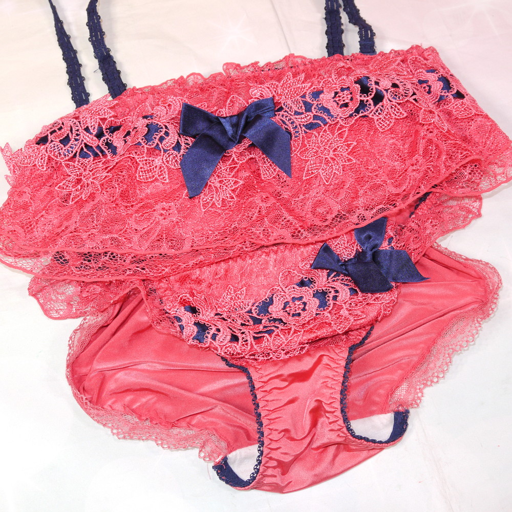 【BCランク/K43-】ケーズウェイ:M:BCカップ程 Lサイズ ★ Risa Magli!超絶キュートな花アップリケ 甘コーラル PBセット