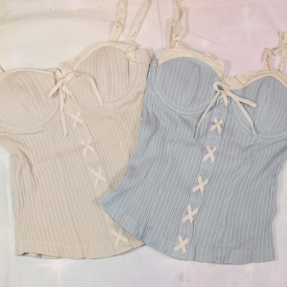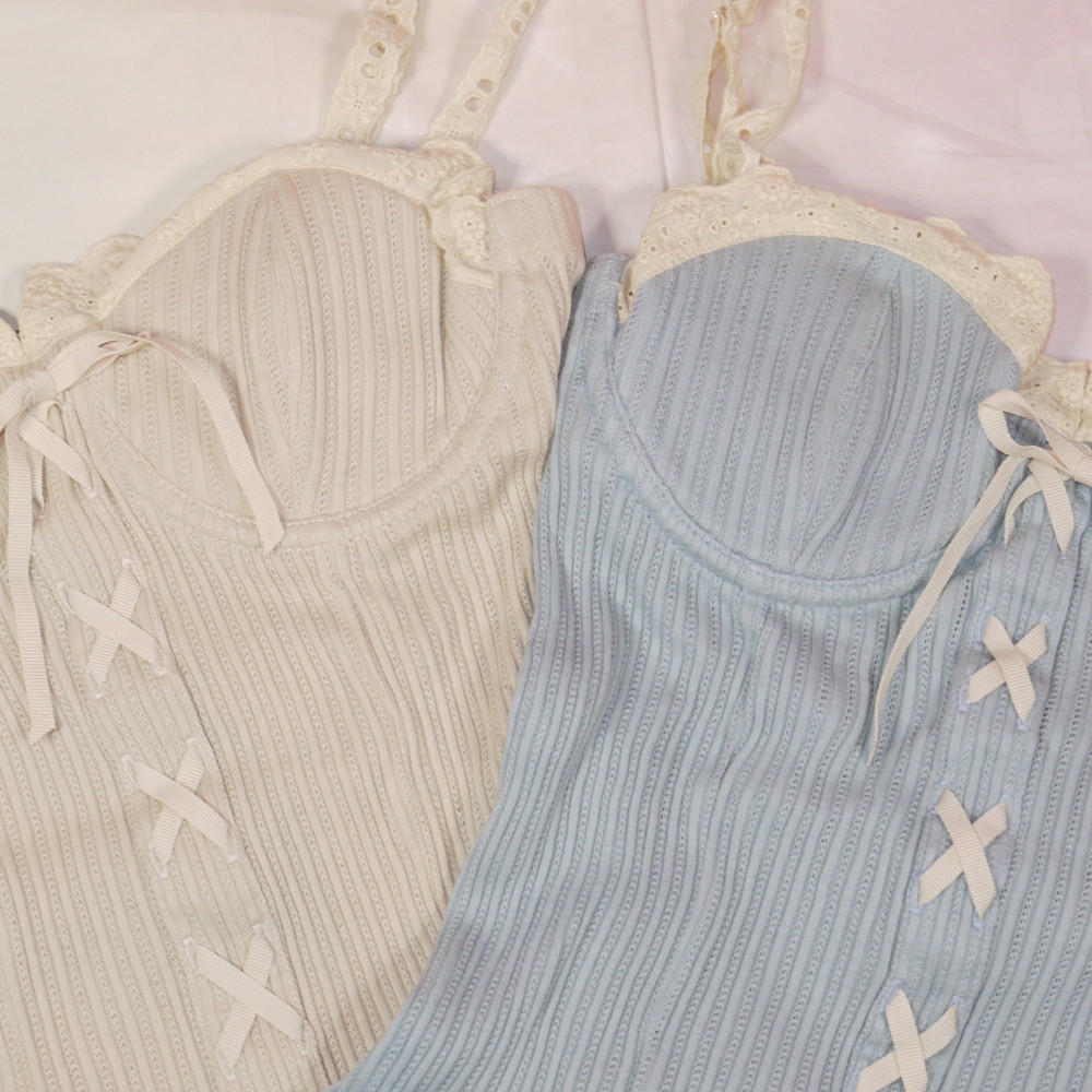 【Bランク/新古美品】まとめ売り:BCカップ程 ★ ロリっと可愛いクラシック系 キャミブラ 2枚セット