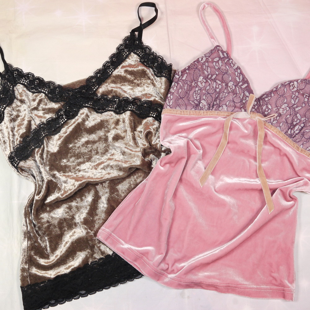 【Bランク/新古美品】まとめ売り:Mサイズ ★ 平成ギャルなベロア生地 JCJK・ギャル系 キャミ 2枚セット