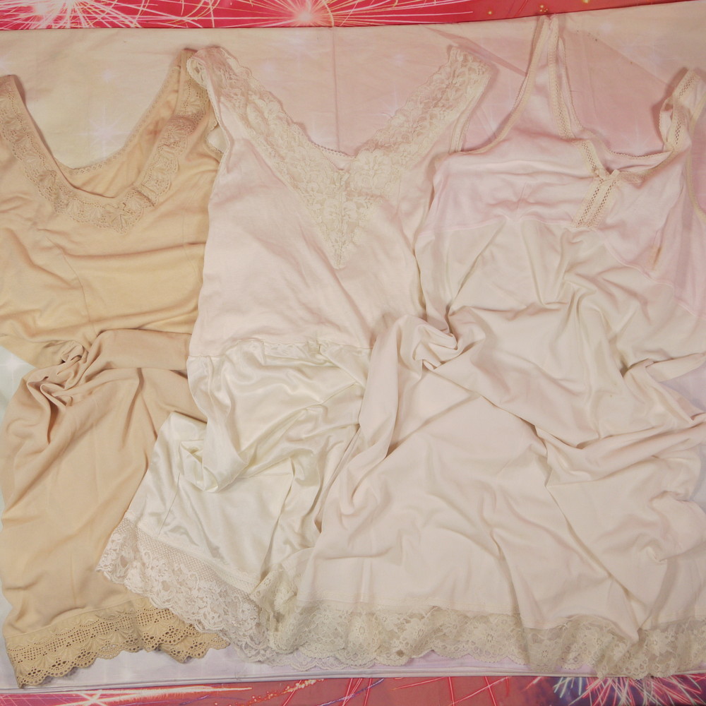 【Cランク】まとめ売り:MLサイズ程 ★ 奥様系のレトロなレース使い 切り替えスリップ