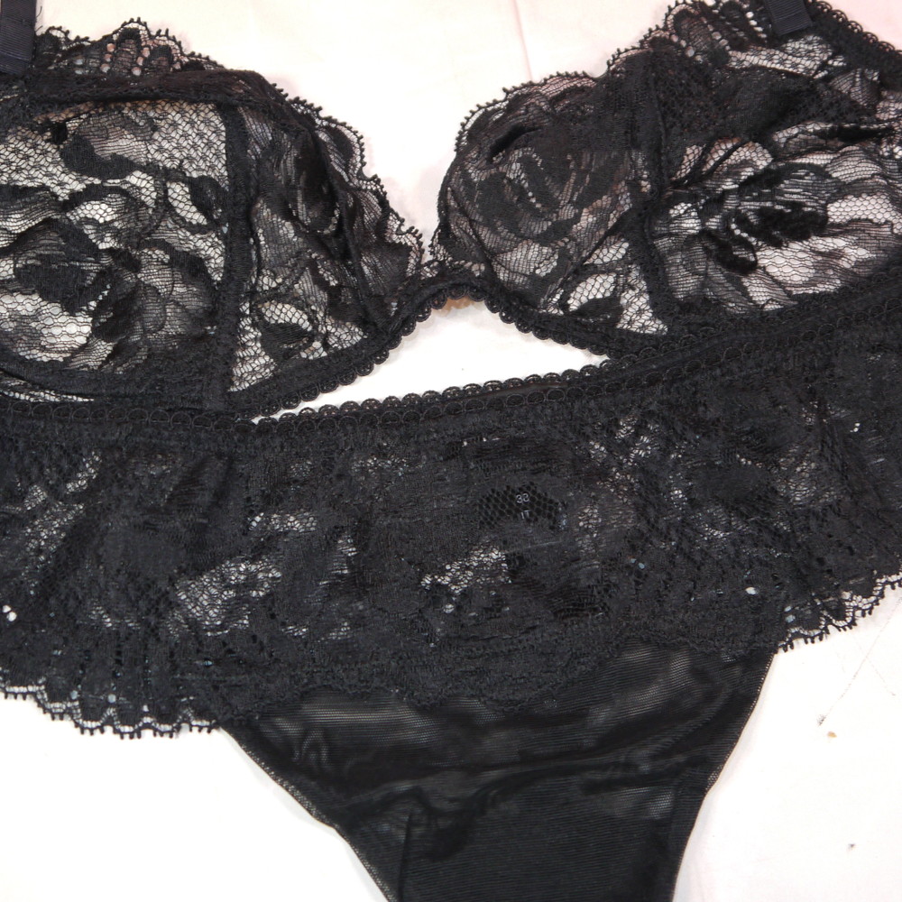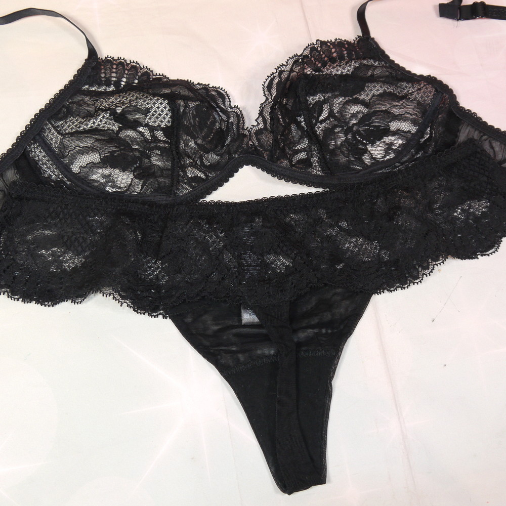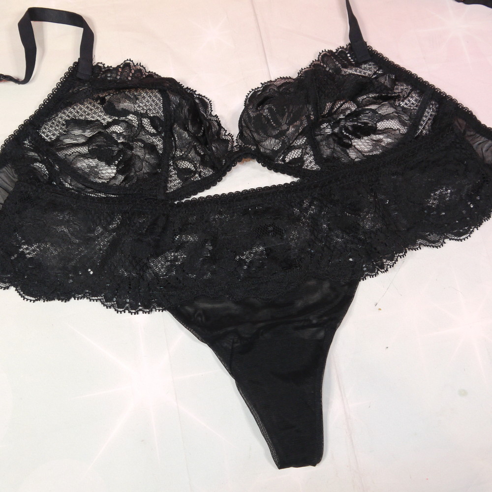 【BCランク/K43-】LA PERLA:B85 2:MLサイズ程 ★ 痴女感ましましの黒ランジェ 透け胸SEXY T PBセット