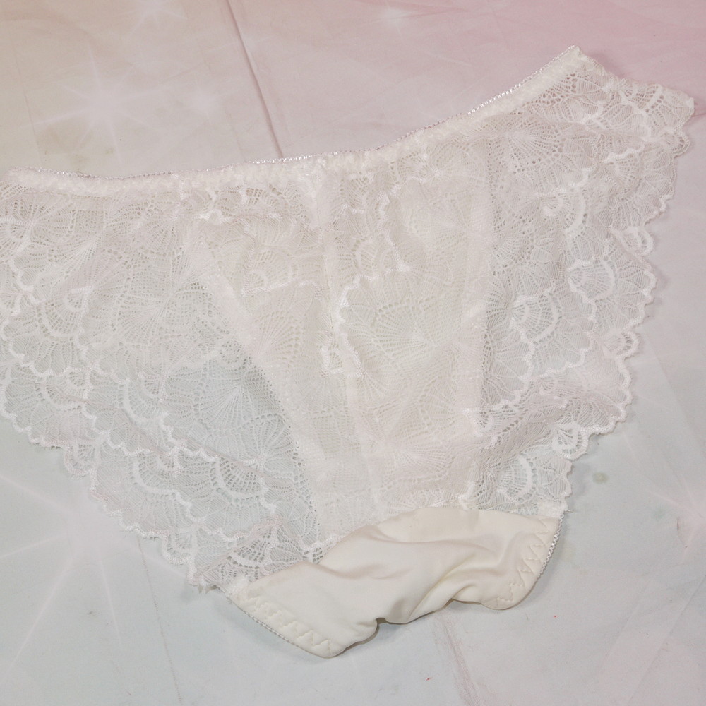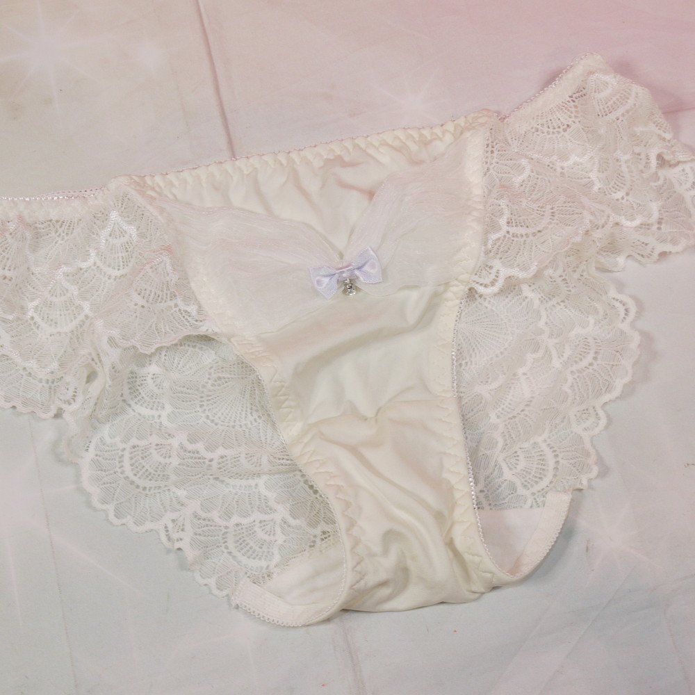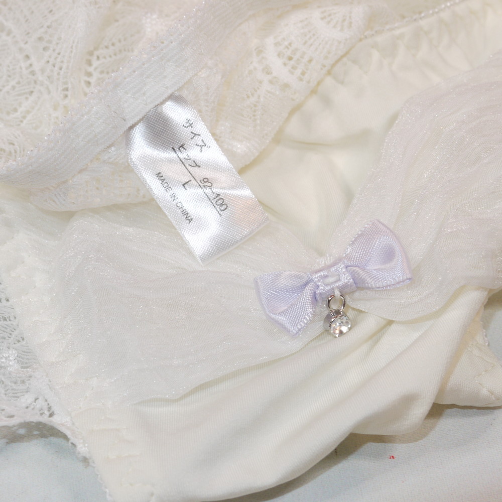 【Bランク/新古美品】:Lサイズ ★ 純粋香る白×透尻レース お嬢様系パンティ