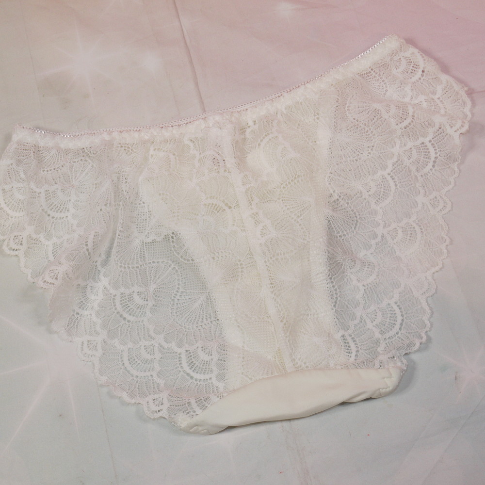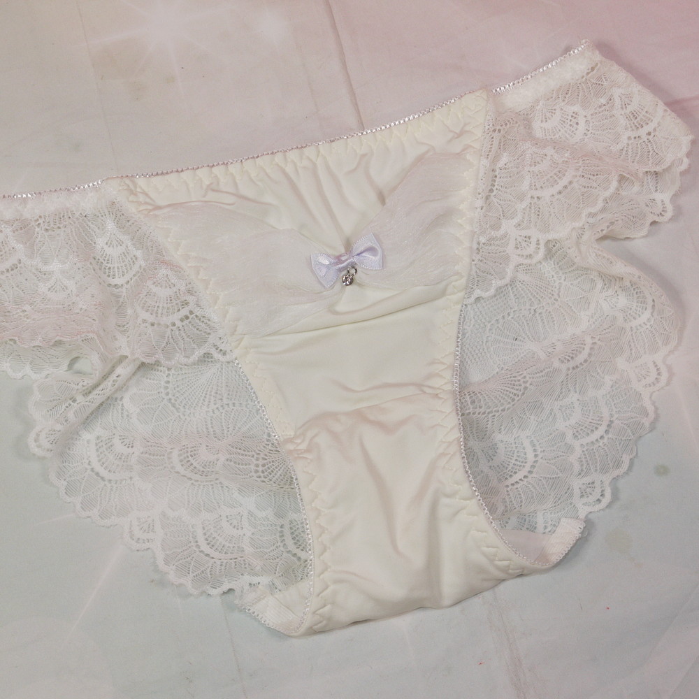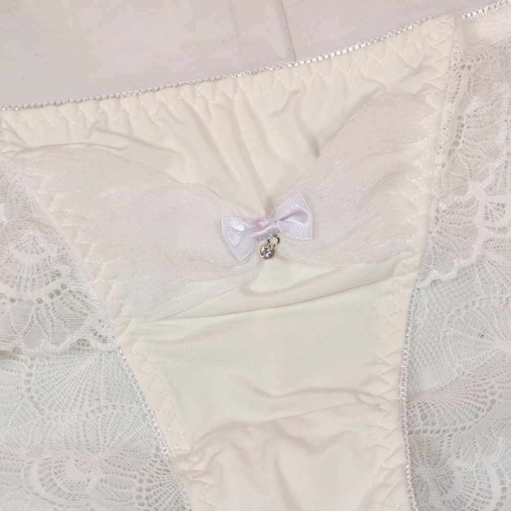 【BCランク/K43-】:Lサイズ ★ 純粋クリーム×透けレース りぼんがキュート お嬢様ショーツ