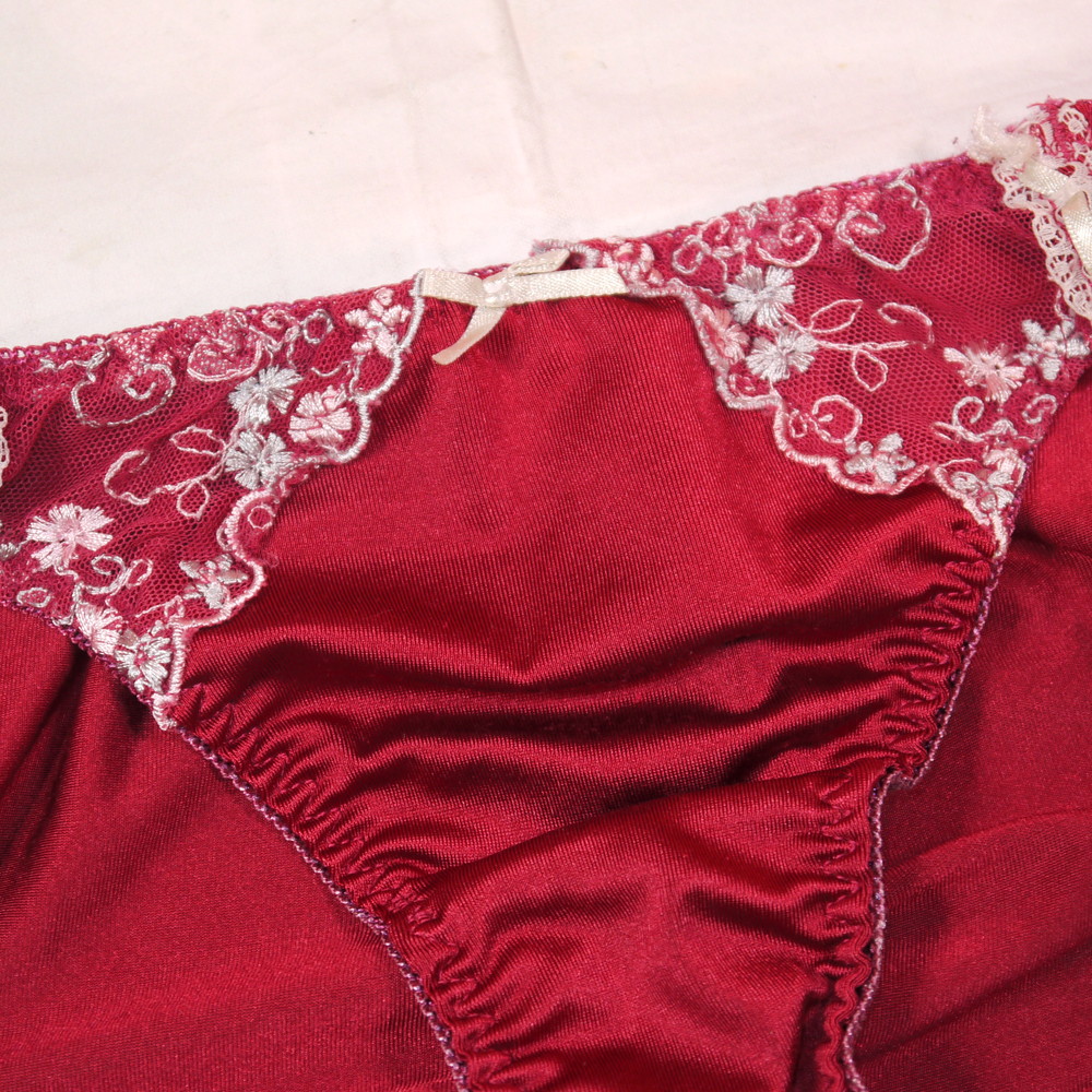 【Cランク】日本ボディファッション:Mサイズ ★ つるっとサテン生地×ボルドー 清楚女子系 ショーツ