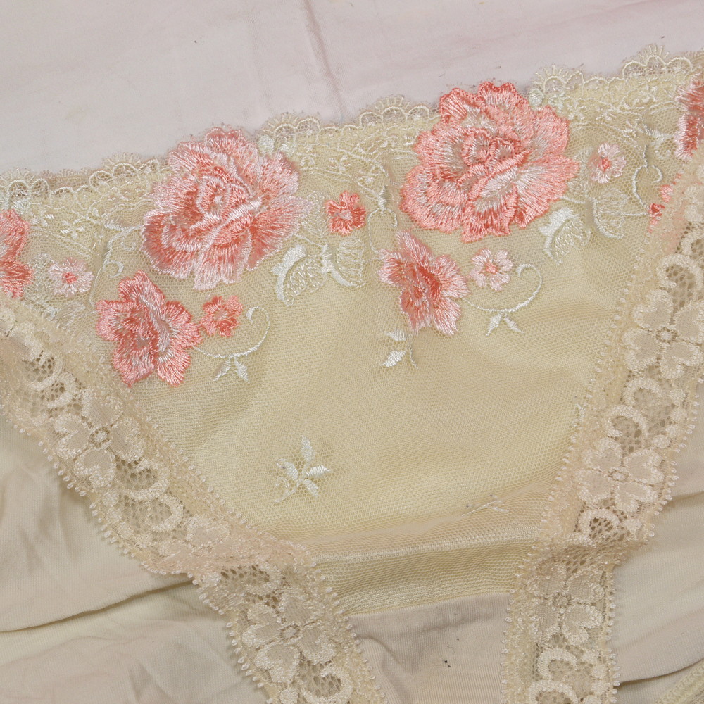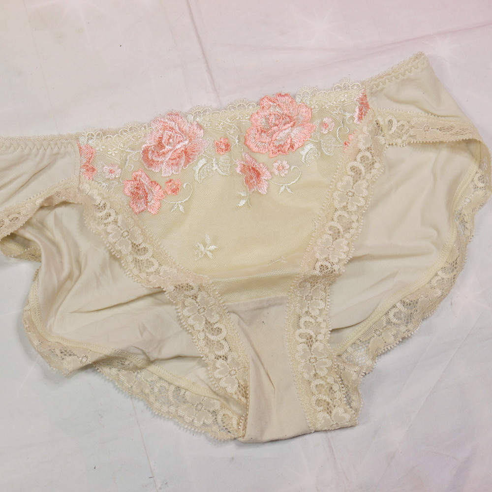 【Cランク/K43】ワコール:Lサイズ ★ 大人清楚なアイボリー×花刺繍 ショーツ