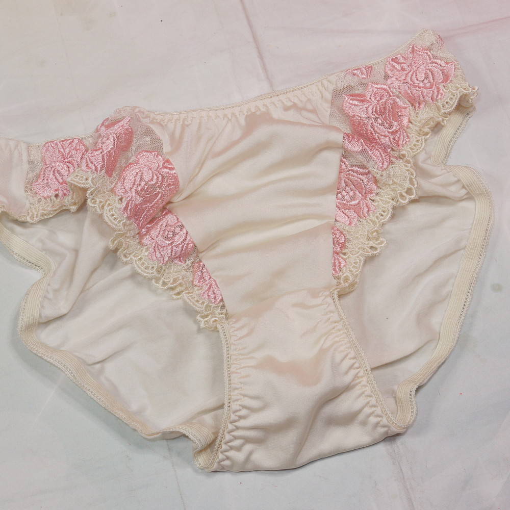 【Bランク/新古美品】ワコール:Lサイズ ★ 旧品番!甘アイボリーに厚手薔薇? しっとりショーツ