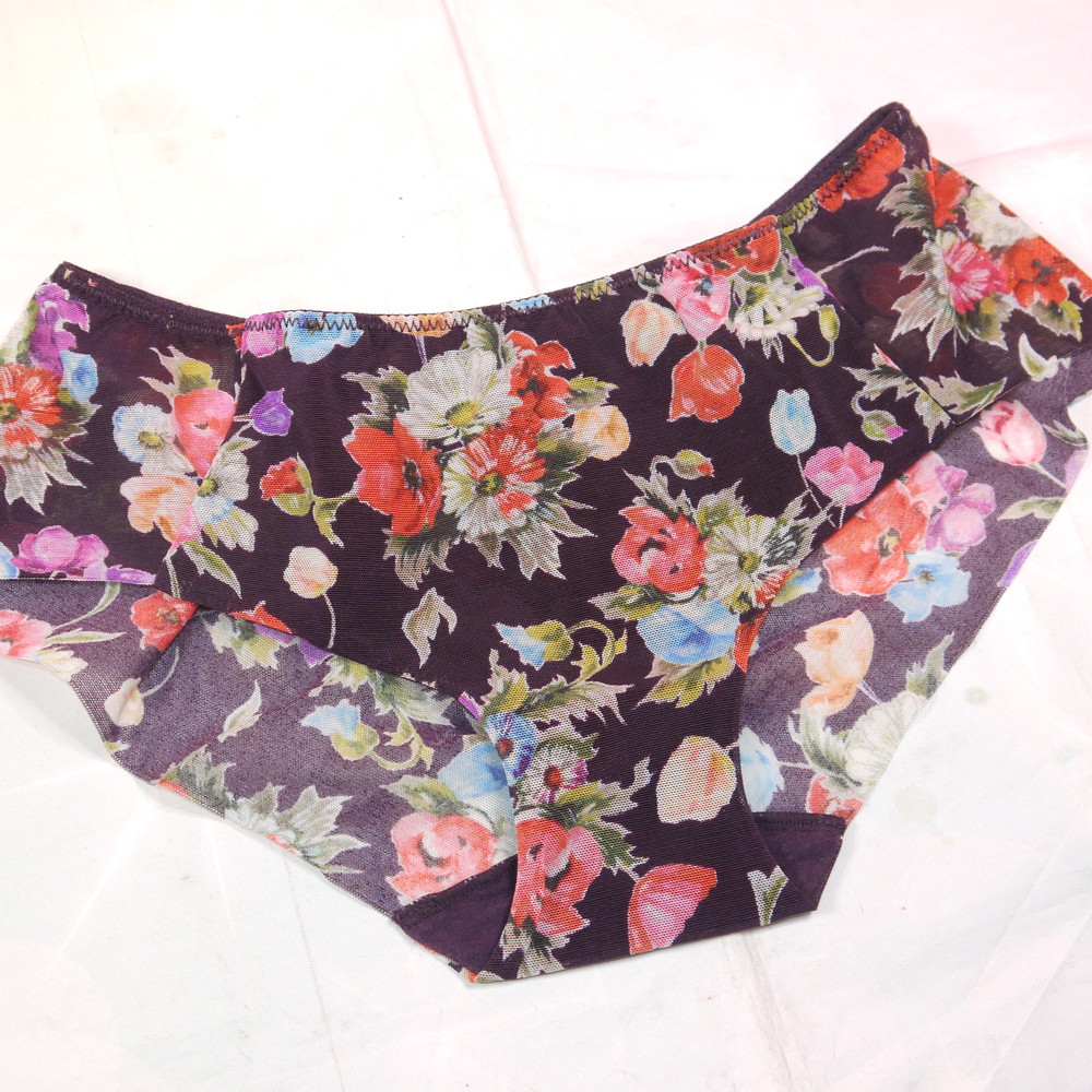 【Bランク/新古美品】ワコール:Mサイズ ★ MC!華やかで毒々しい深紫×お花柄 ショーツ