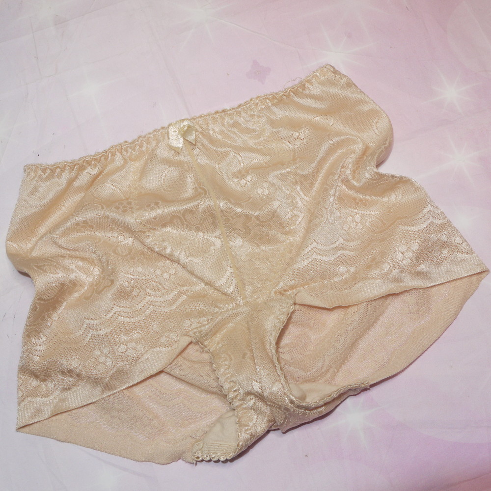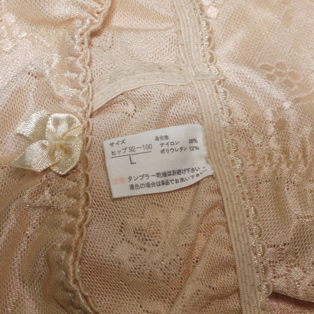 【Bランク/新古美品】関西ファッション:Lサイズ ★ 艶々ゴールドベージュ 和花柄生地 奥様の美尻ショーツ