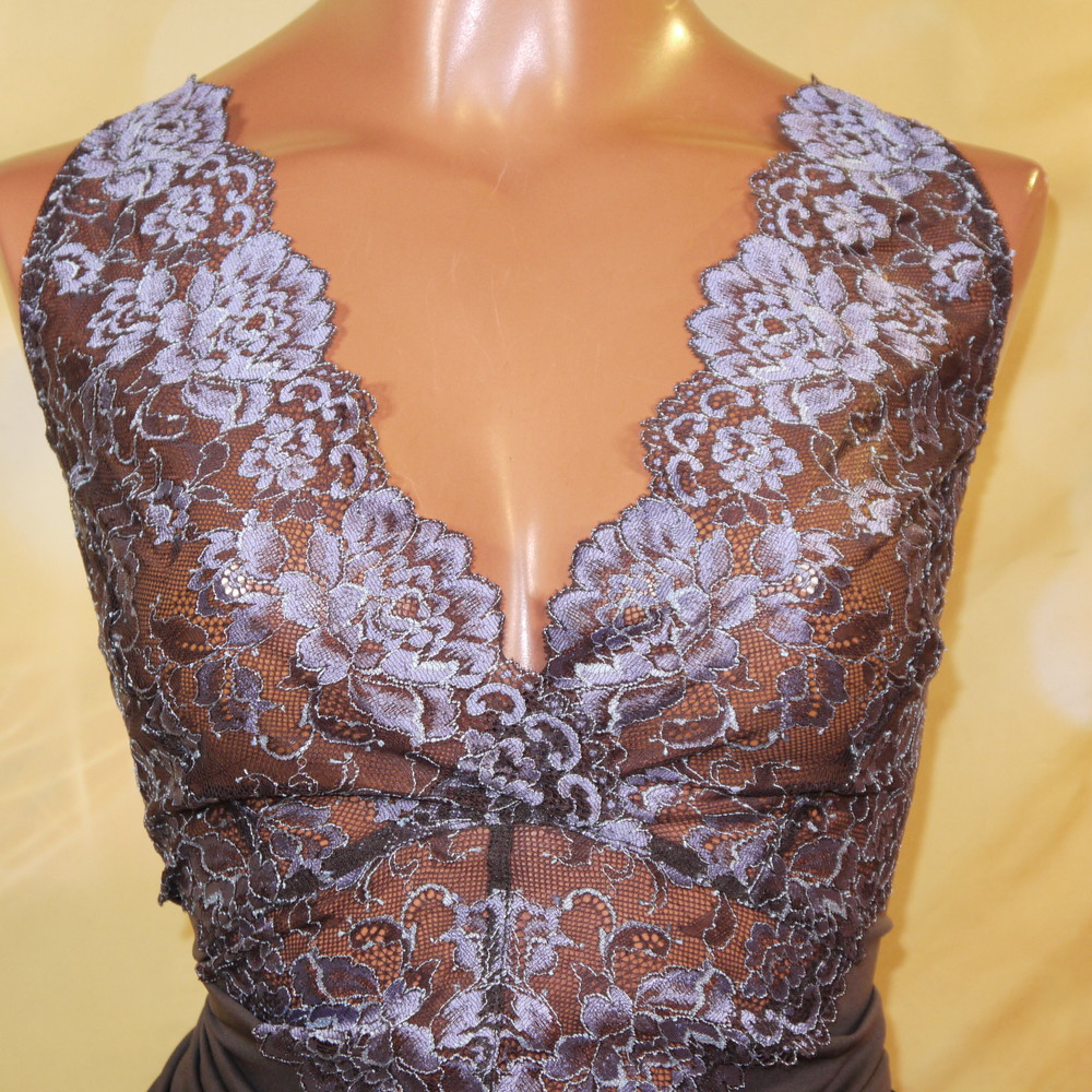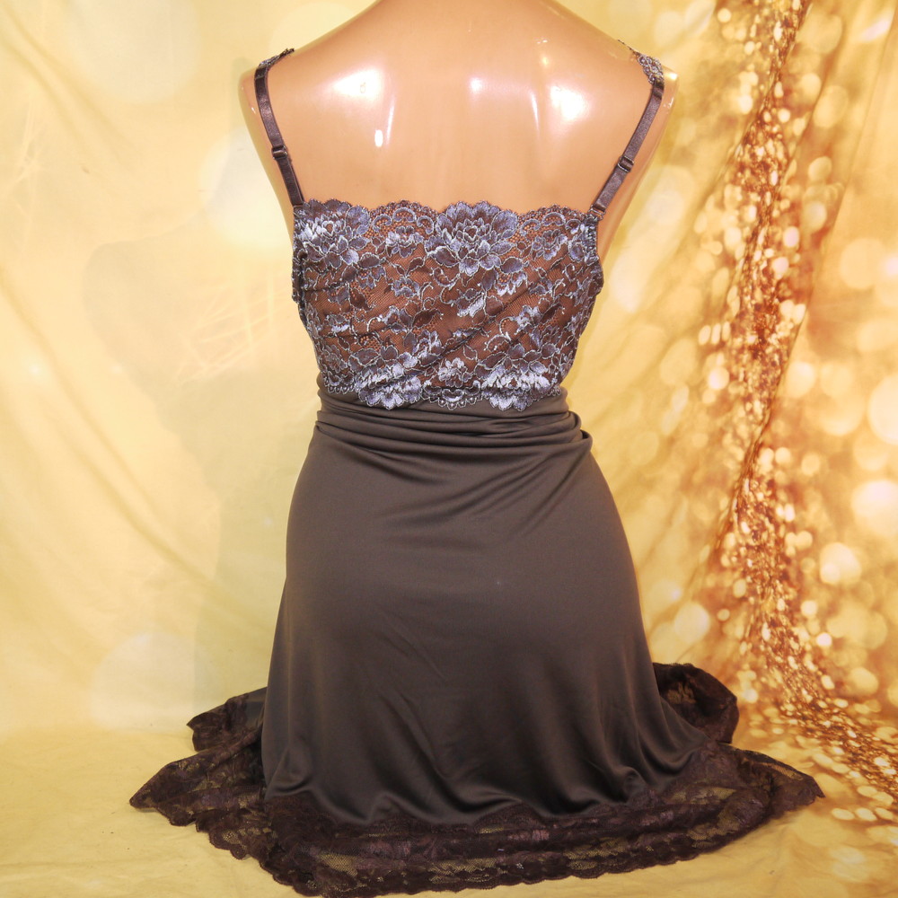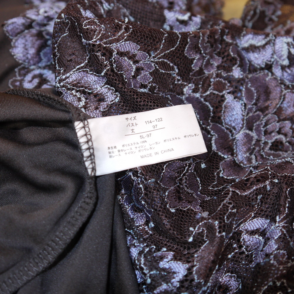 【Aランク/未使用】ドマーチェ:5L 丈97 ★ 高級感溢れるブラウン 胸部繊細透けレース 超メガ スリップ