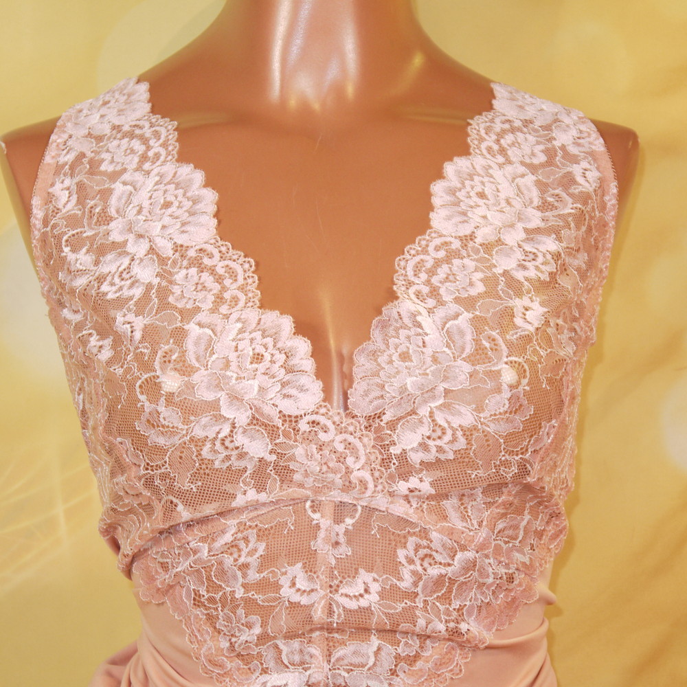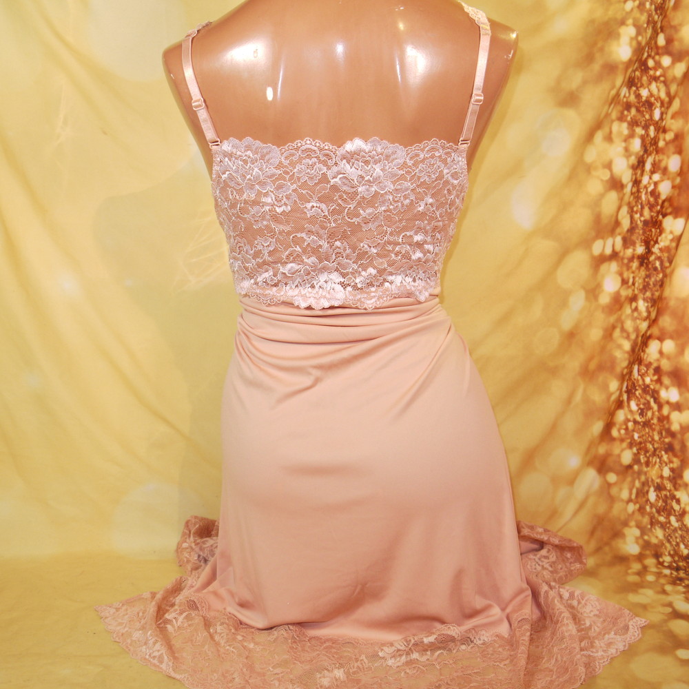 【Aランク/未使用】ドマーチェ:5L 丈97 ★ 大人可愛いオレンジ 胸部透かし花レース 超メガ スリップ