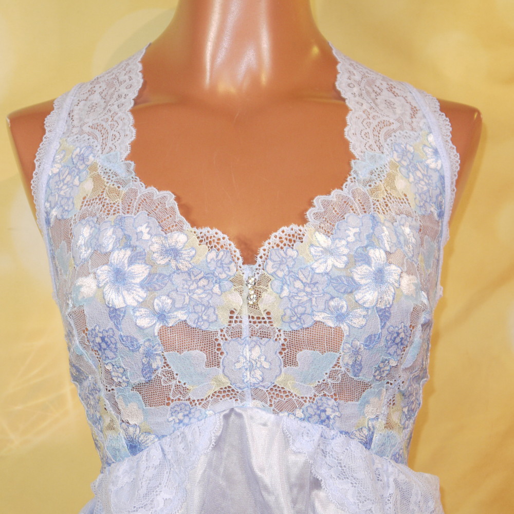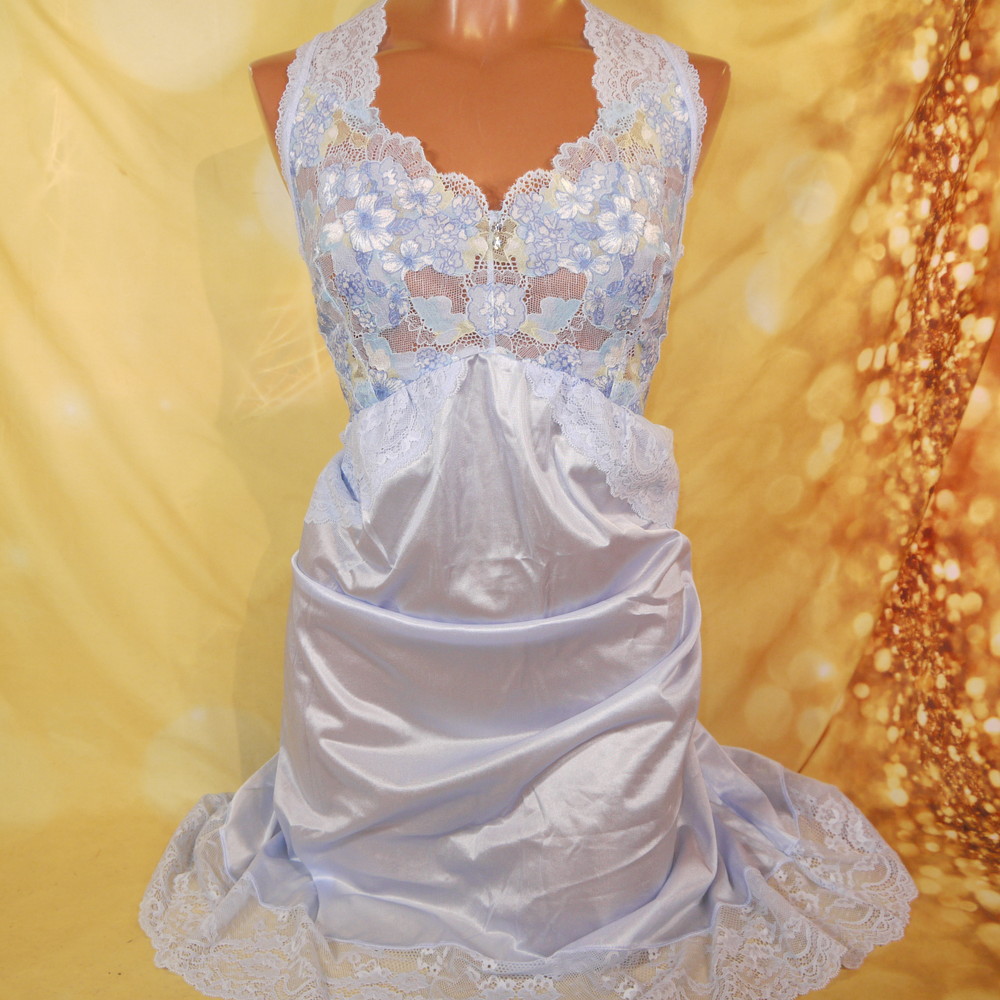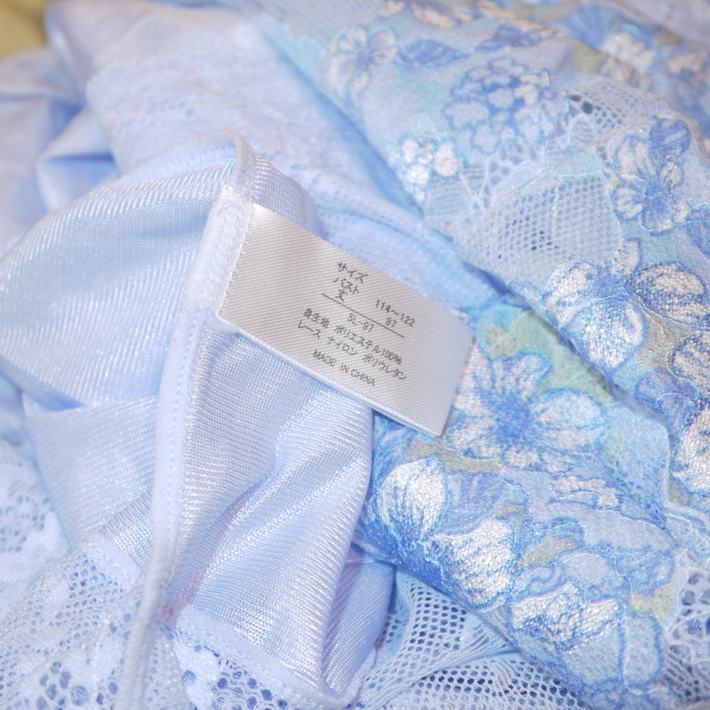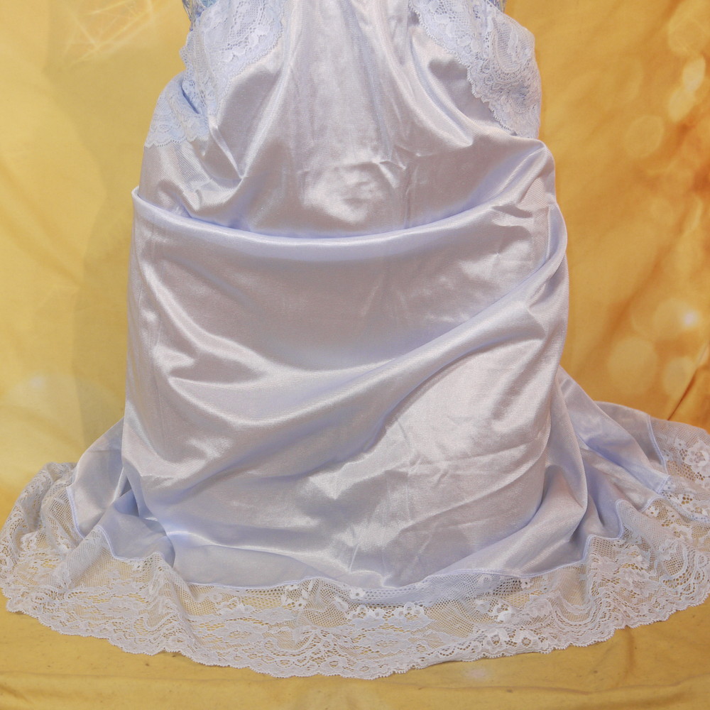 【Aランク/未使用】ドマーチェ:5L 丈97 ★ 清楚感溢れる淡ブルー 胸部透かしレースが超SEYX スリップドレス ネグ 超メガ