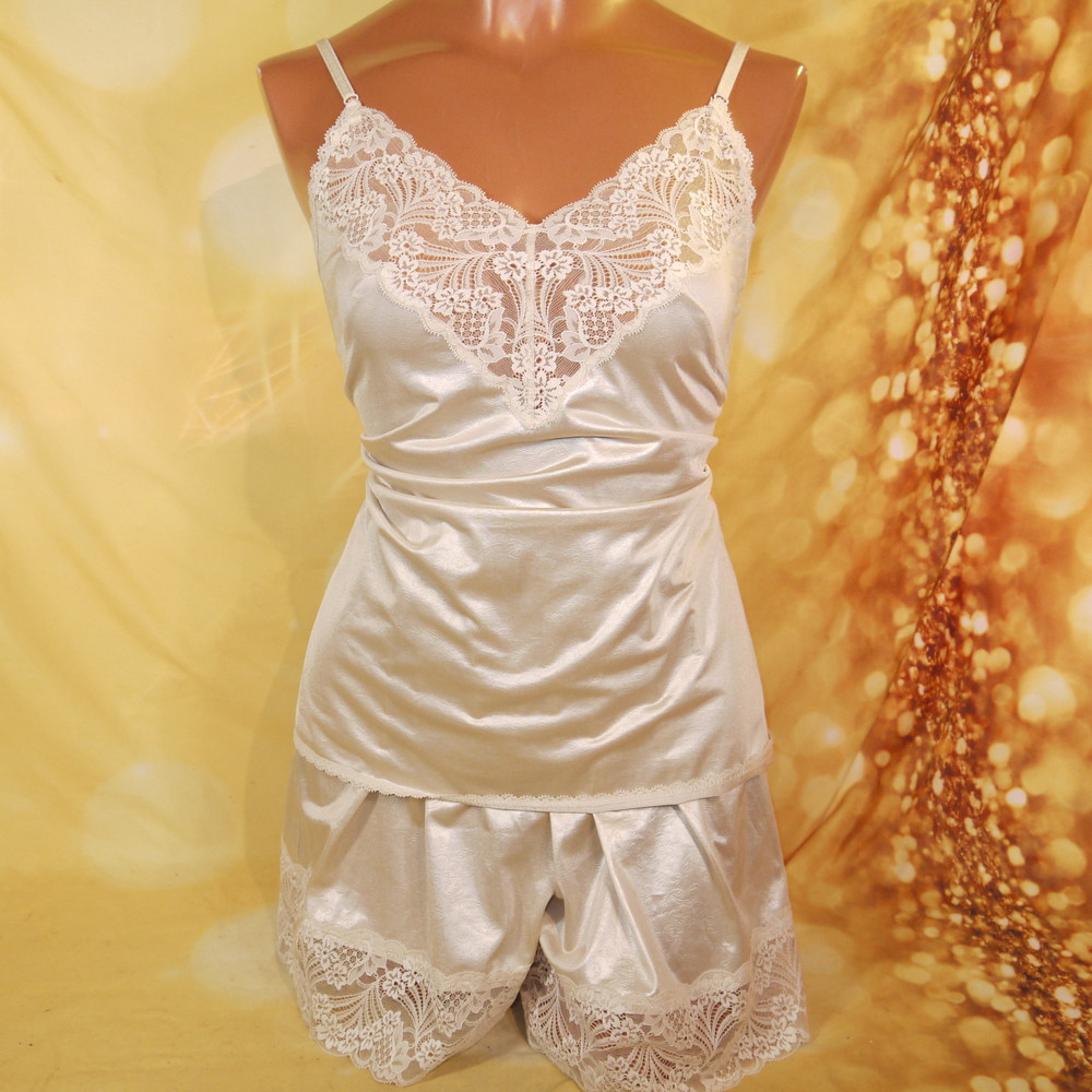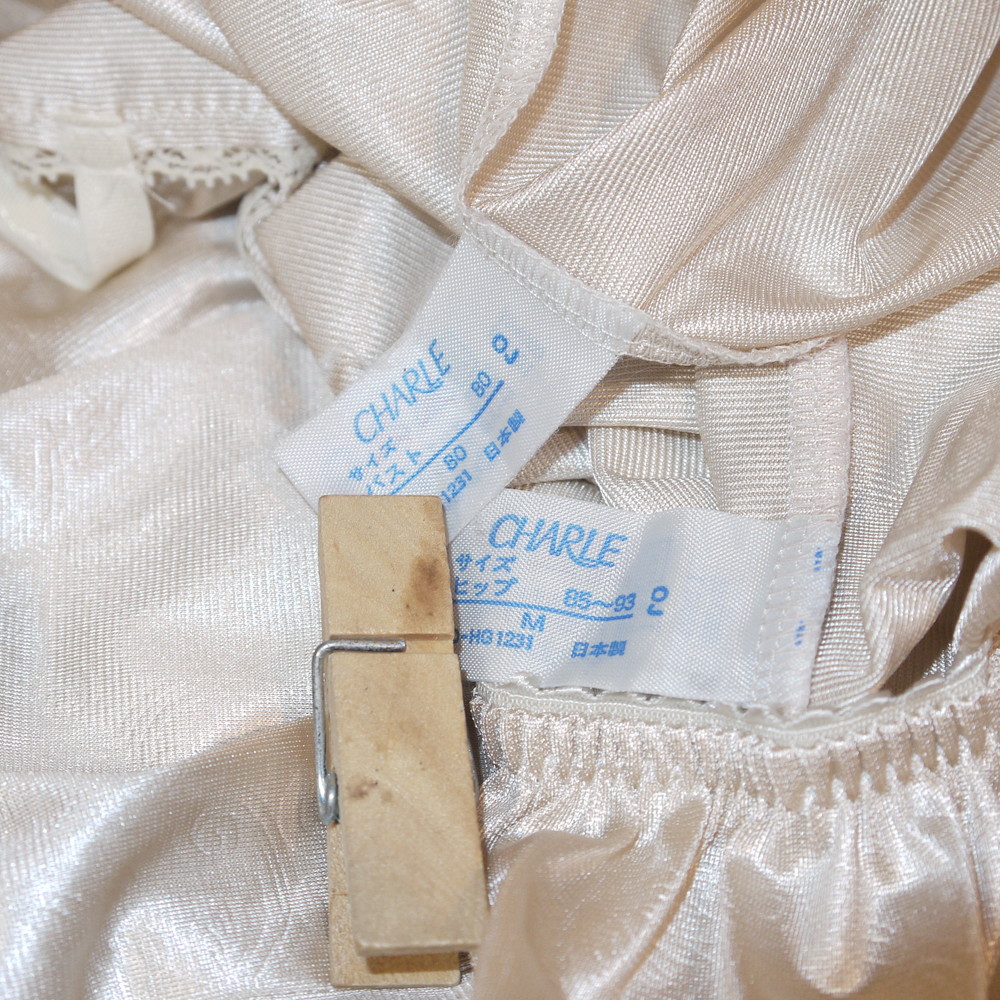 【Bランク/新古美品】シャルレ:上:B80 丈60 下:M 丈38 ★ 高級感溢れるシャンパン×甘光沢感 テディ風 キャミ&ペチセット
