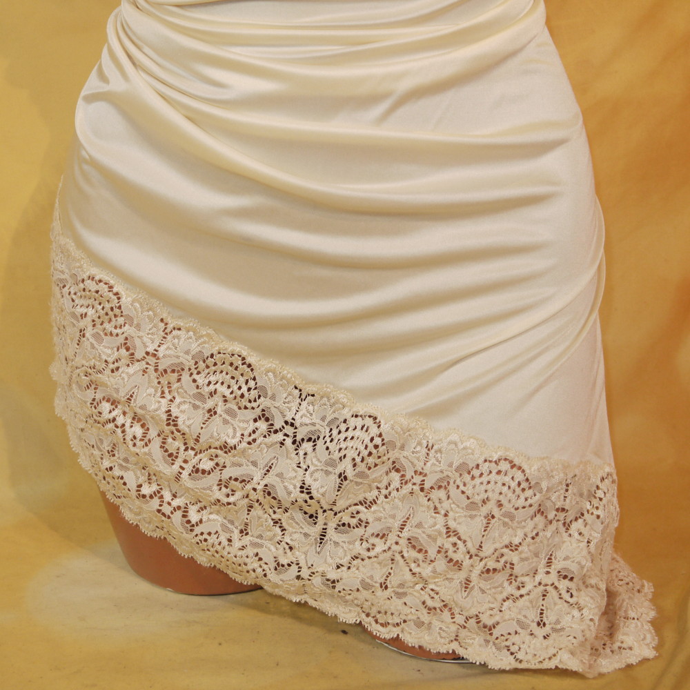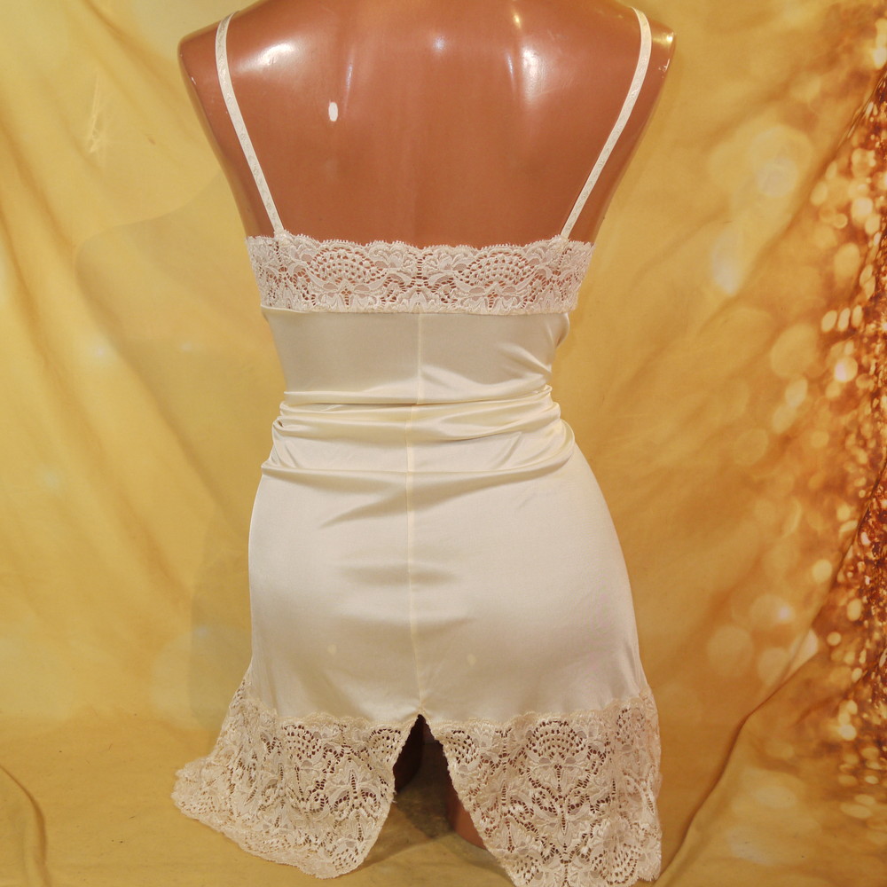 【BCランク】:MLサイズ程 丈85 ★ 甘光沢感に繊細でエレガンスなレース使い 背部スリット 上流感溢れるスリップドレス