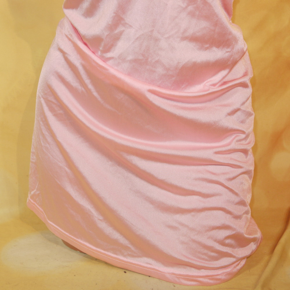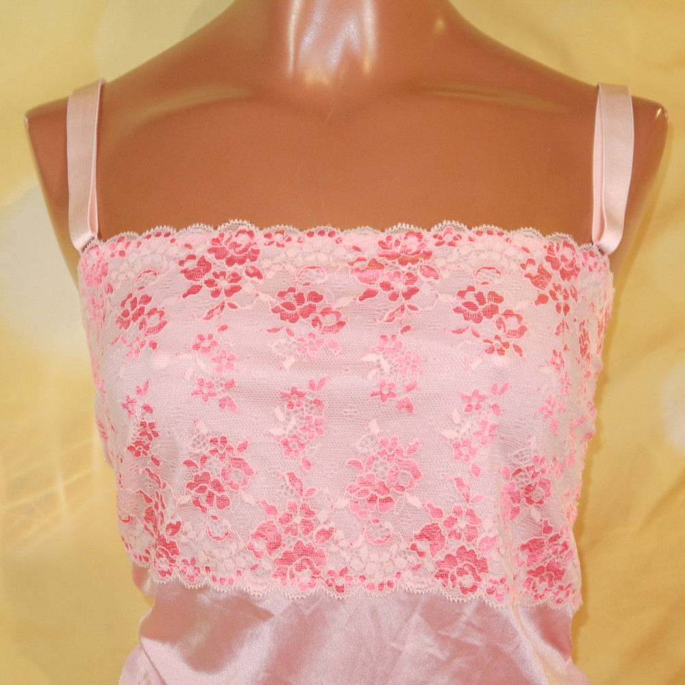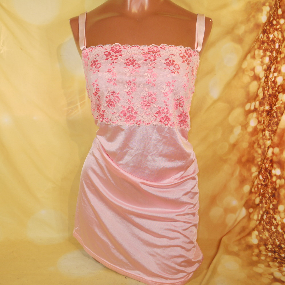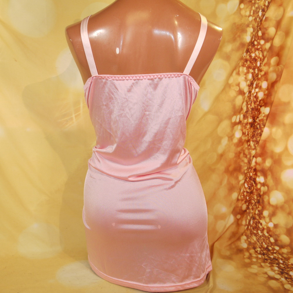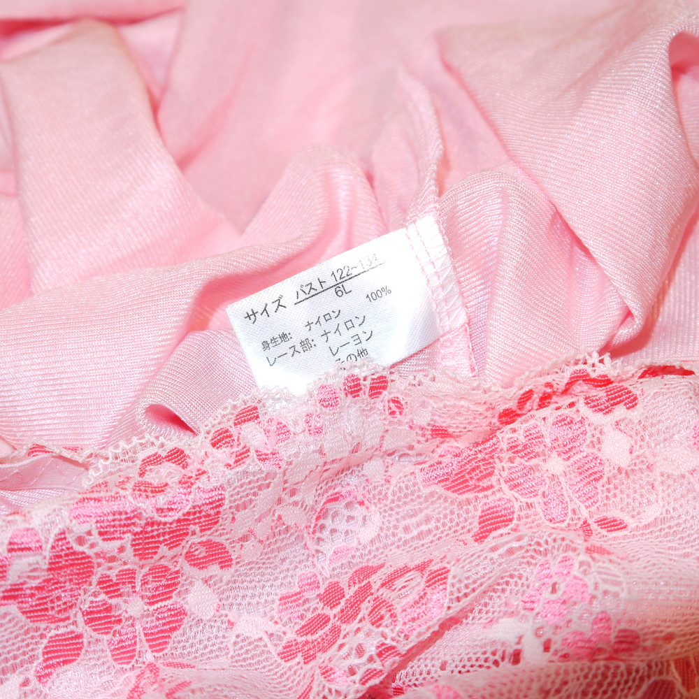 【Bランク/新古美品】ニッセン:6Lサイズ 丈75 ★ 甘ピンク×光沢感 胸部花レース 肉感メガ スリップ