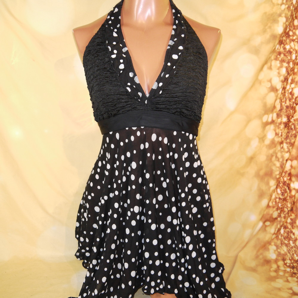 【Bランク/新古美品】:L-LLサイズ程 丈78 ★ ロリっとキュートなデカ水玉 コス・女装にどうぞ キャバ?ギャル? ワンピ