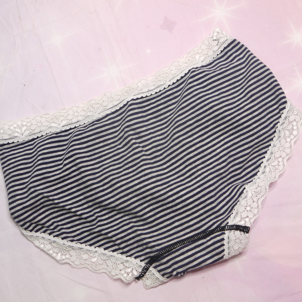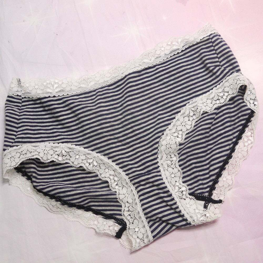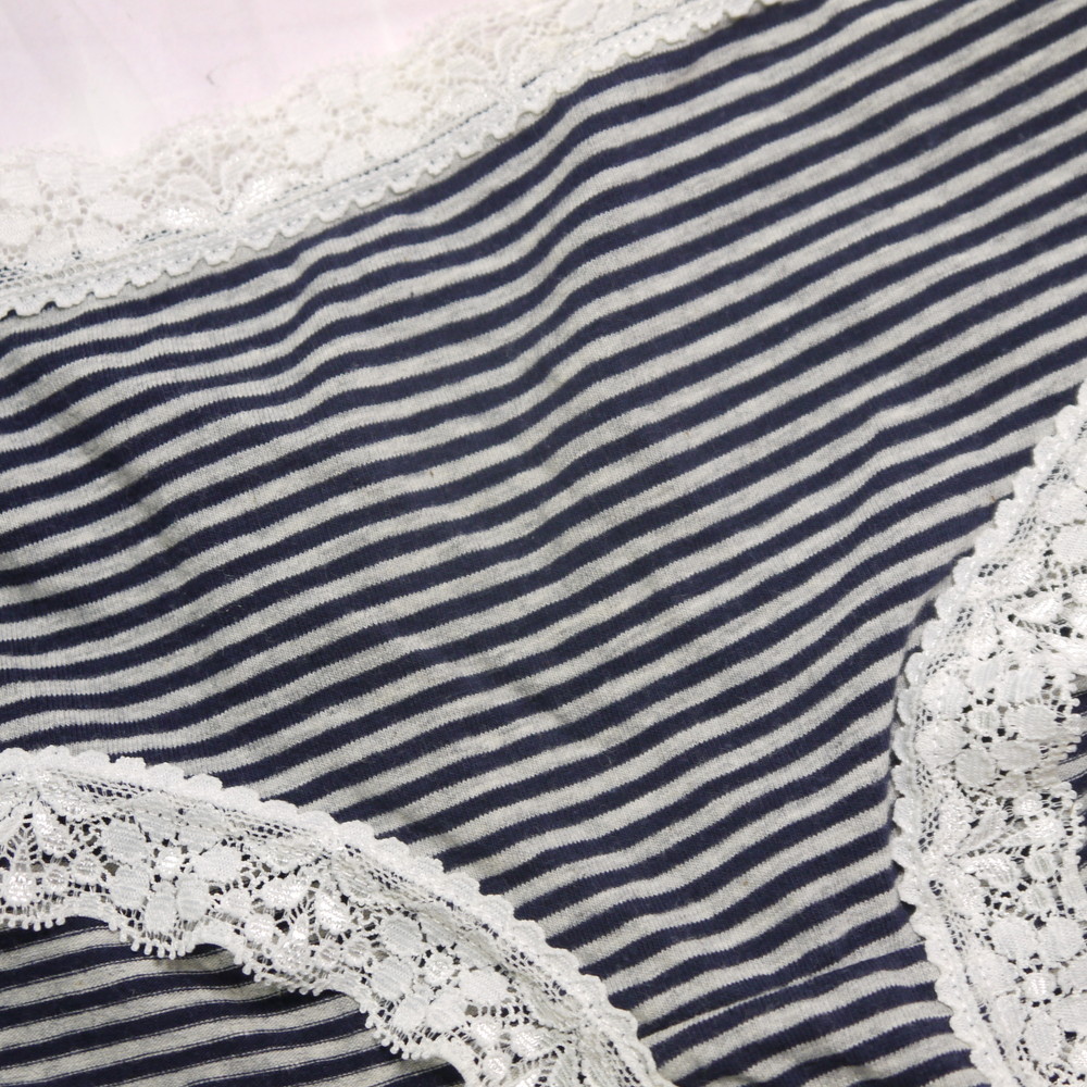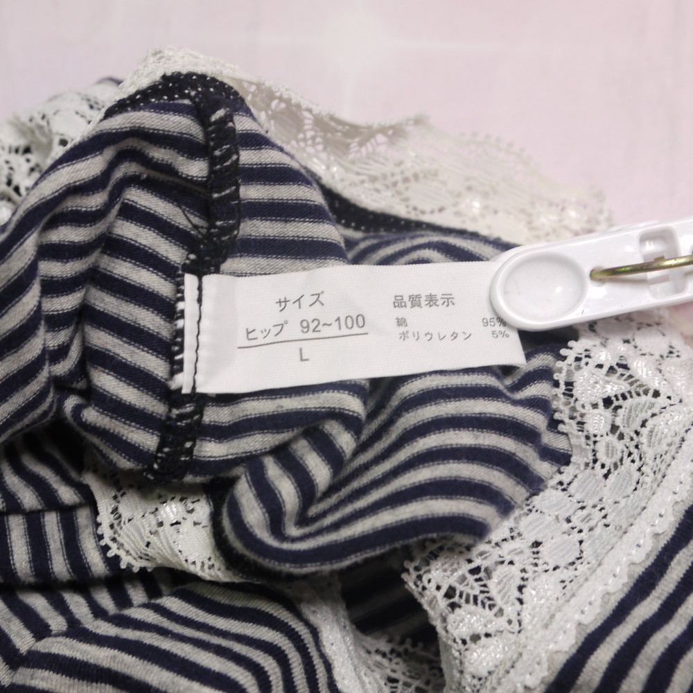【Bランク/新古美品】原田国際:Lサイズ ★ 純粋女子系のしましまP 綿パン 縁取りレース メガ