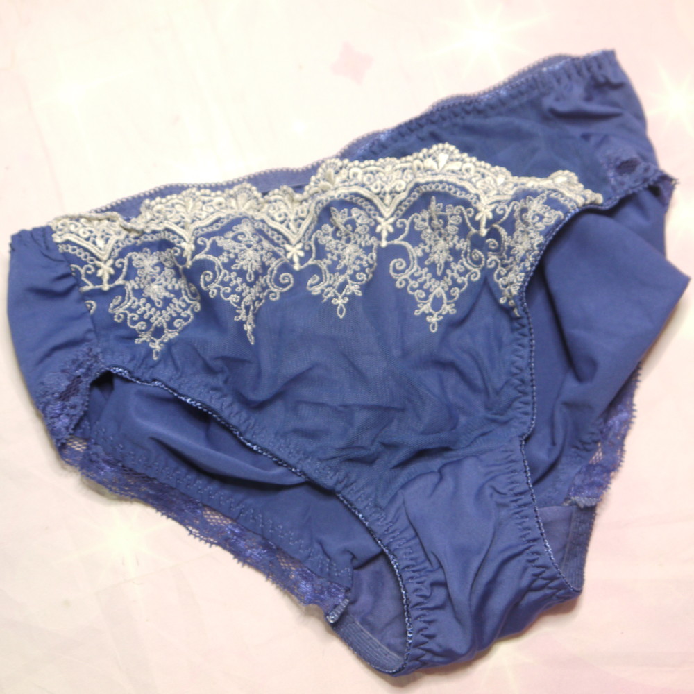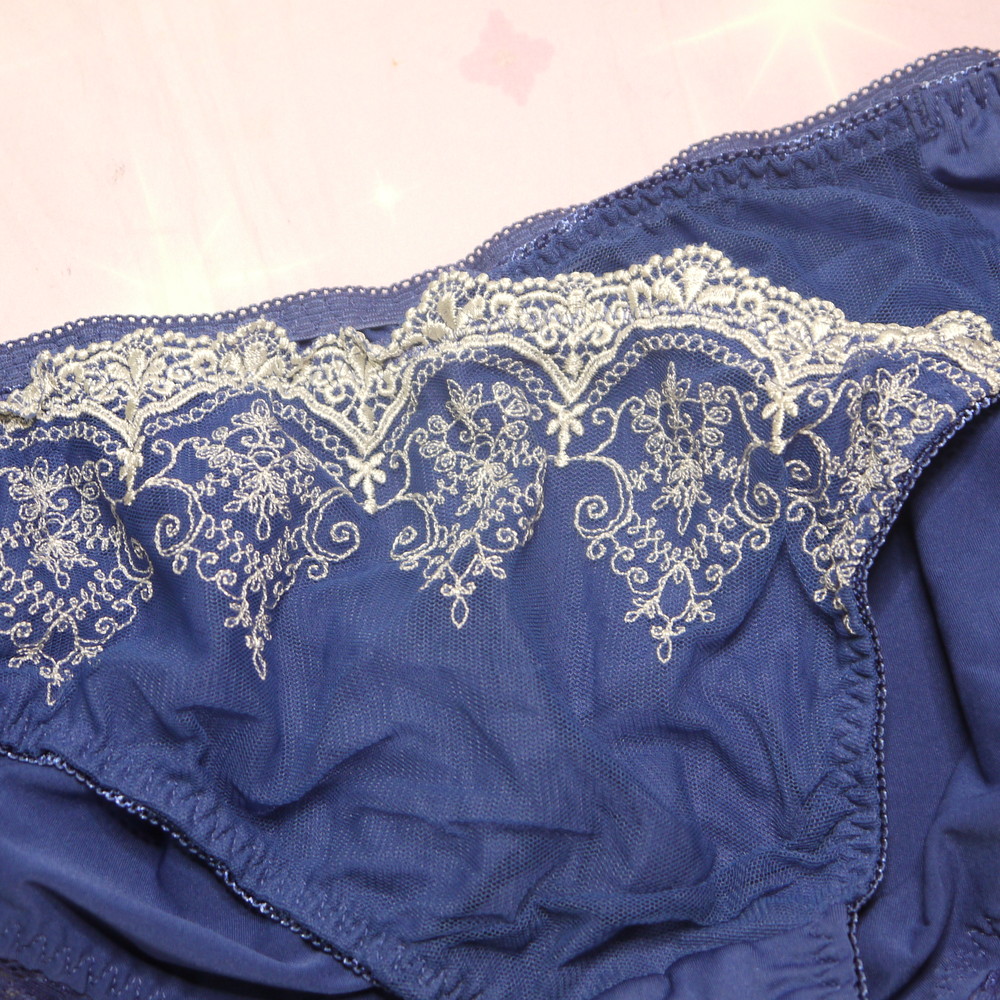 【Bランク/新古美品】トリンプ:3Lサイズ ★ 大人ブルー×豪華なシャンデリア風刺繍 肉感メガ ショーツ