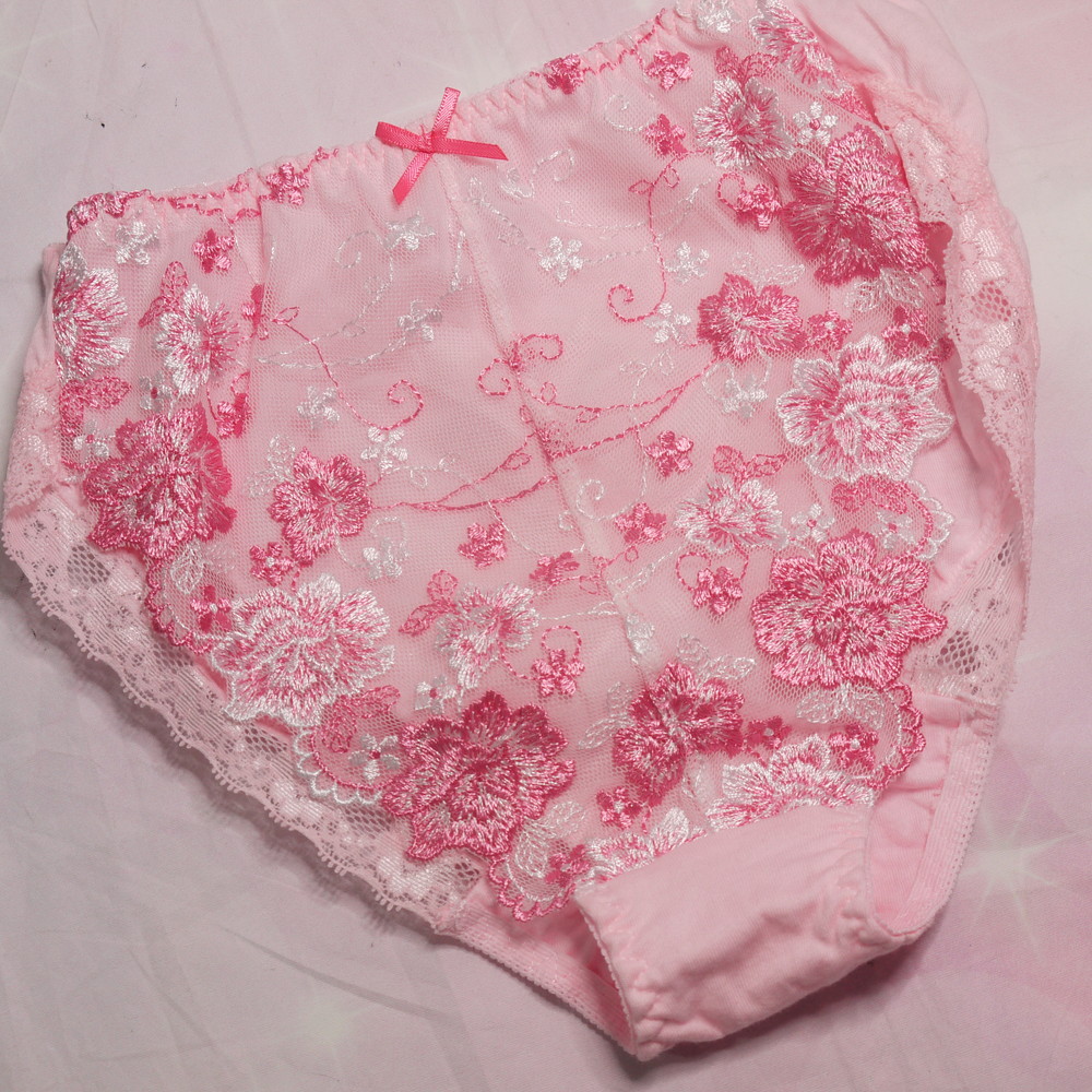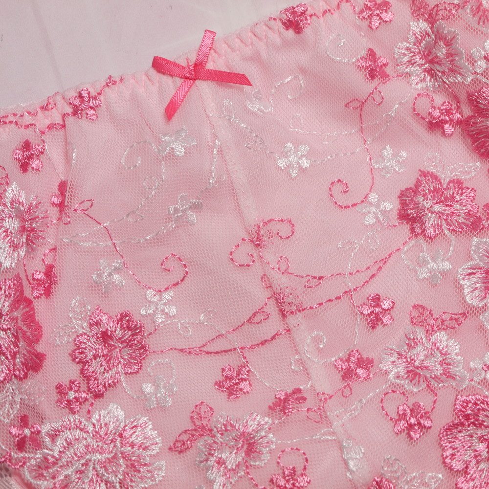 【Bランク/新古美品】ニッセン:Mサイズ ★ 大人可愛いピンク×花刺繍 上質ショーツ
