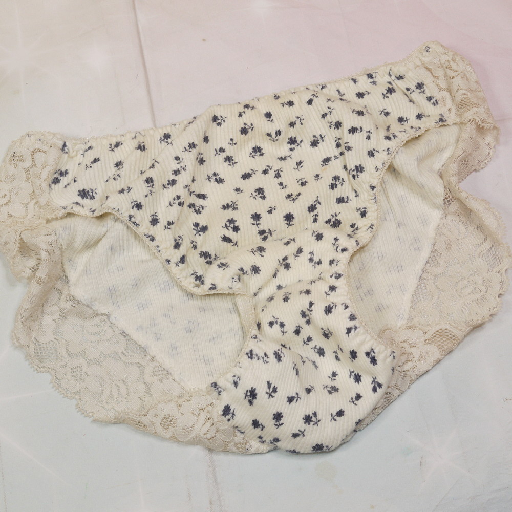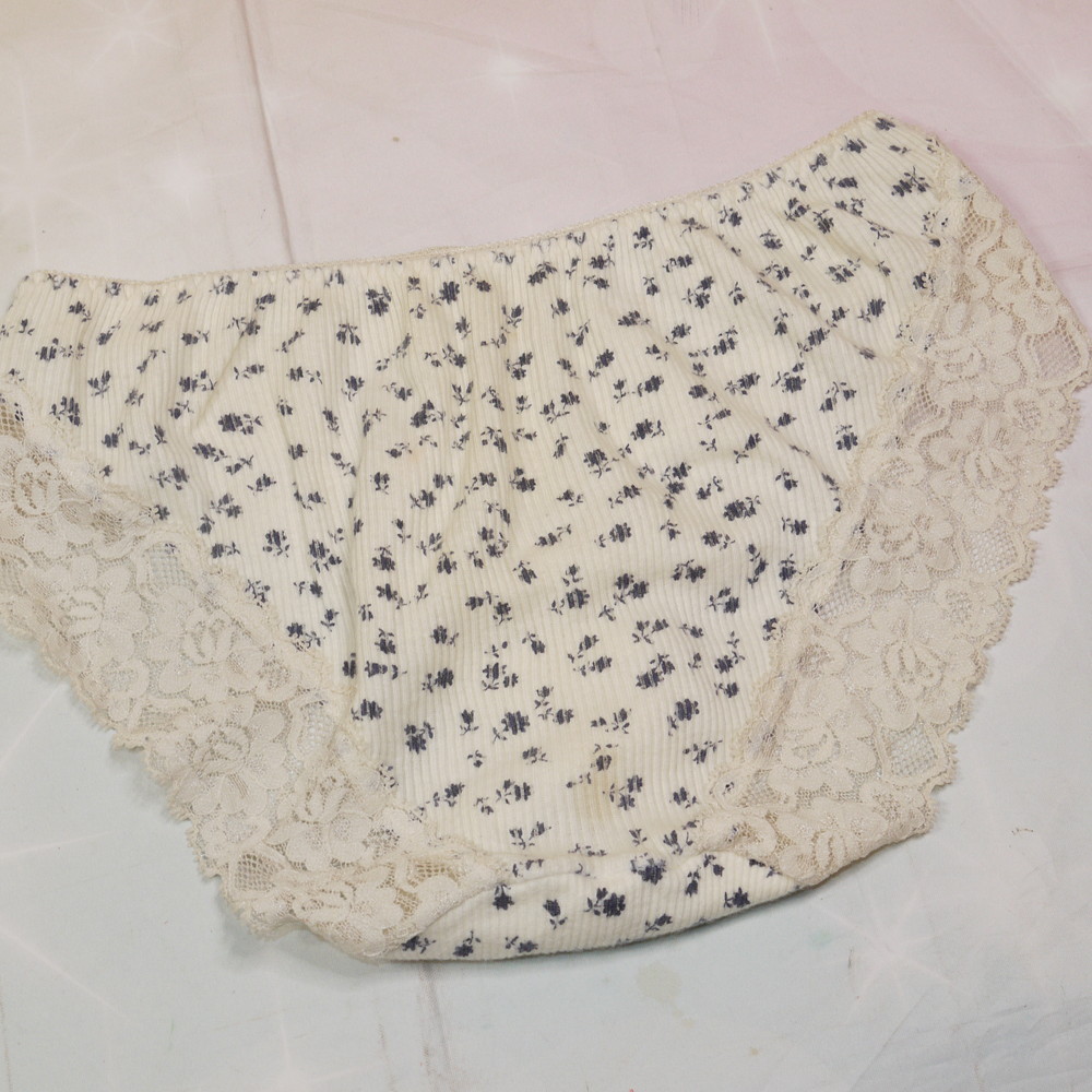 【Cランク/K43-】ロリアン:Lサイズ ★ 純粋系のオフホワ×お花柄 ヴィンテージ調 やんわりショーツ