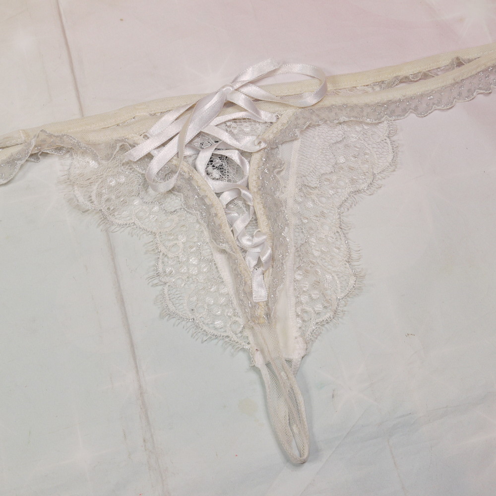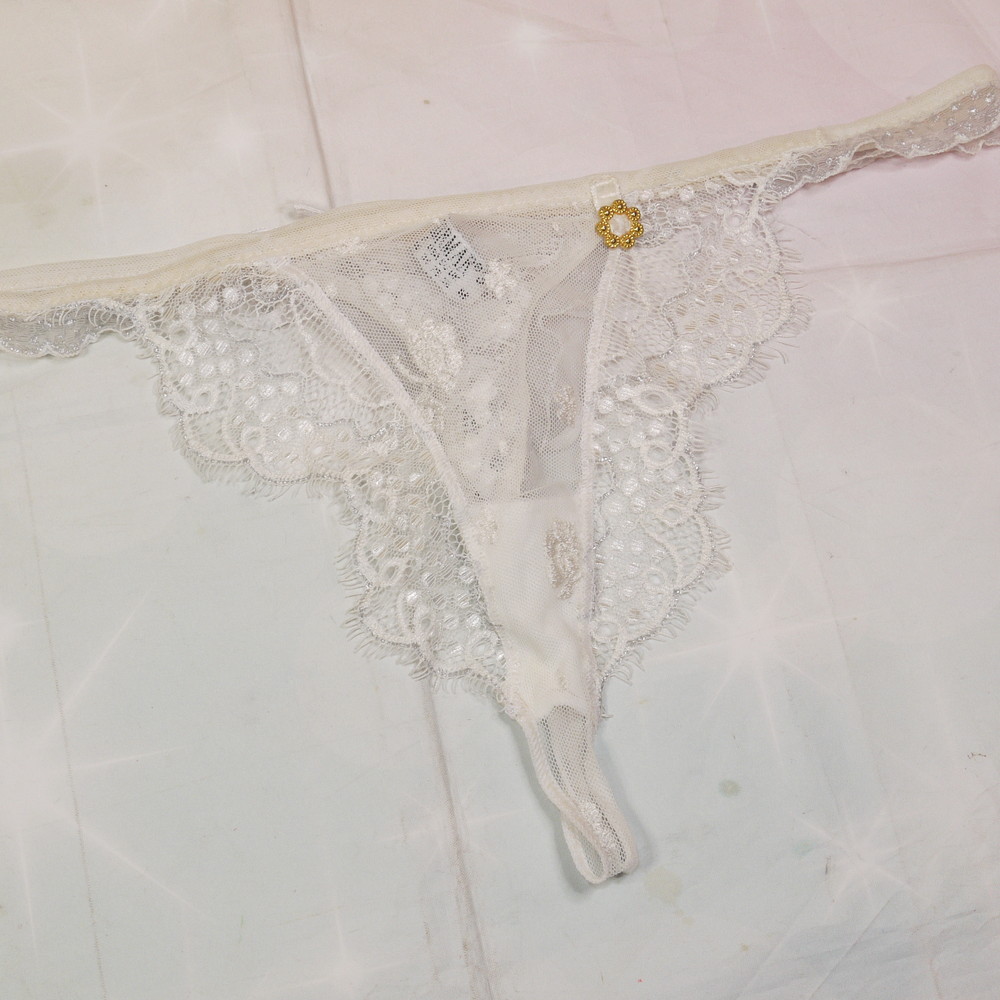 【BCランク/K43-】LORMAR:M:L-LLサイズ程 ★ 店長いちおし!オフホワ×透SEXY KIRAチャーム 背部編み上げ インポートTショーツ