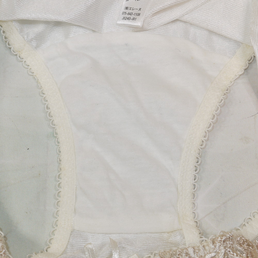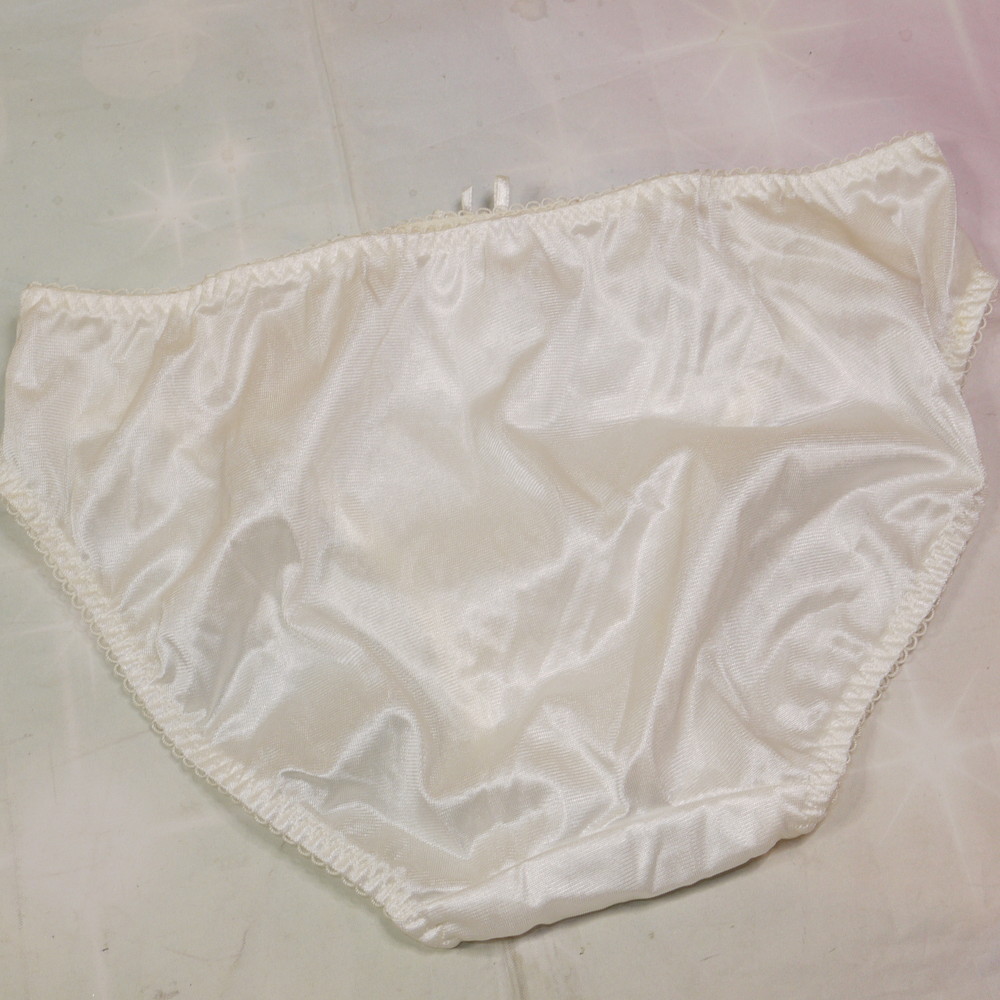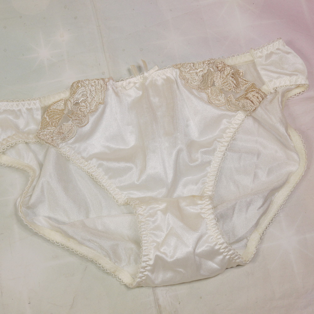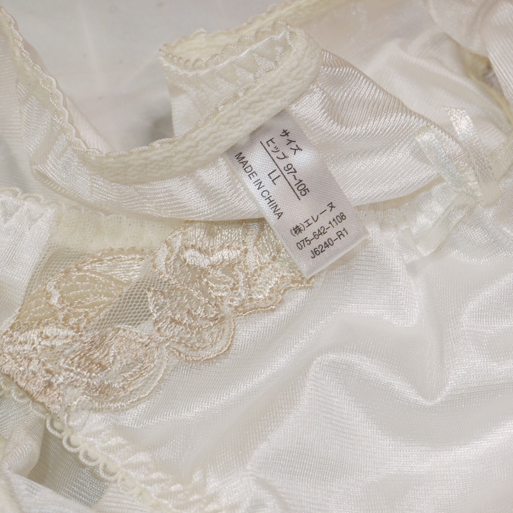 【Bランク/新古美品】エレーヌ:LLサイズ ★ さらっと上品光沢白×金リボン 肉感メガ つるつるパンティ