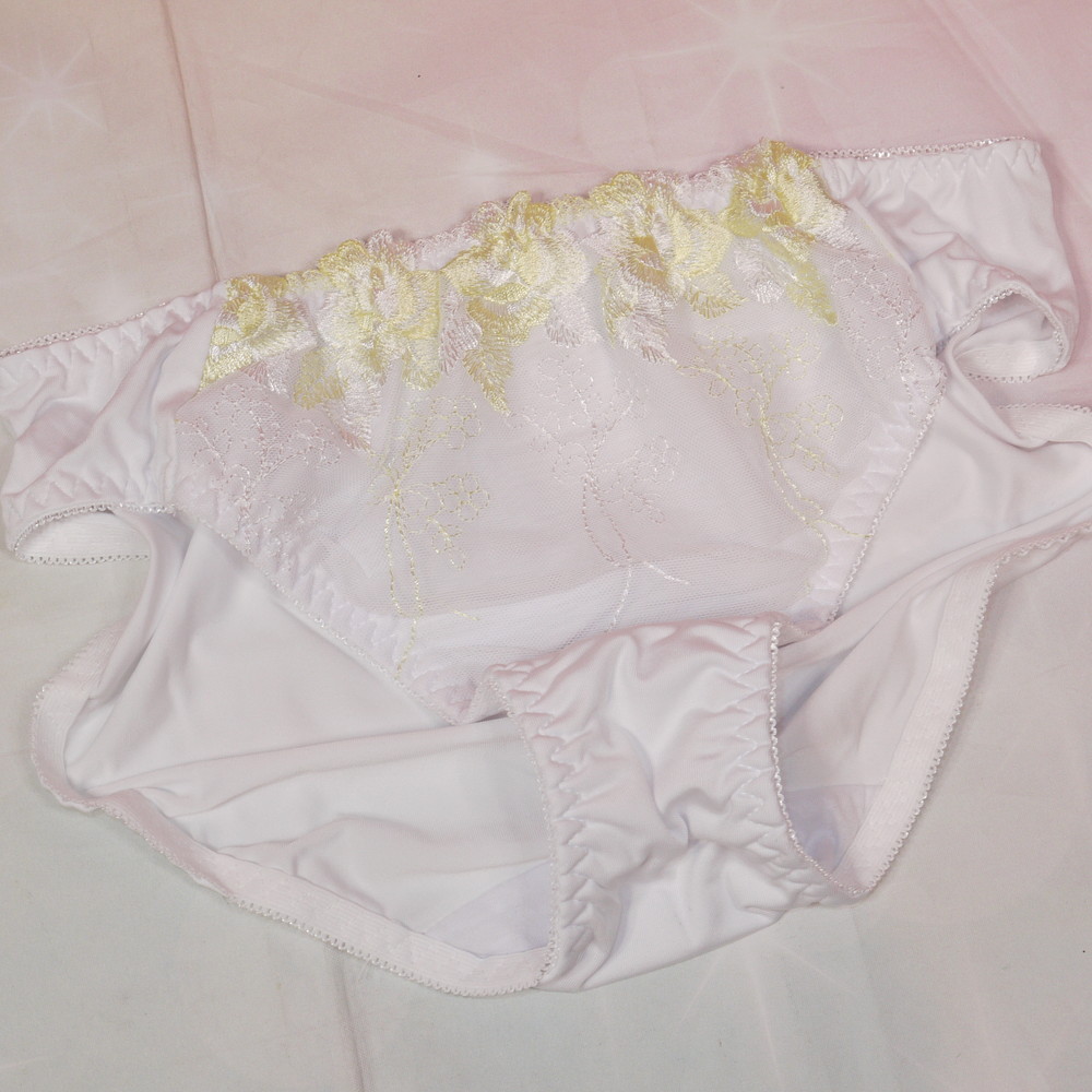 【ABランク/未使用?】エレーヌ:LLサイズ ★ 純粋感がすごい白下着 黄花刺繍 肉尻メガ ショーツ