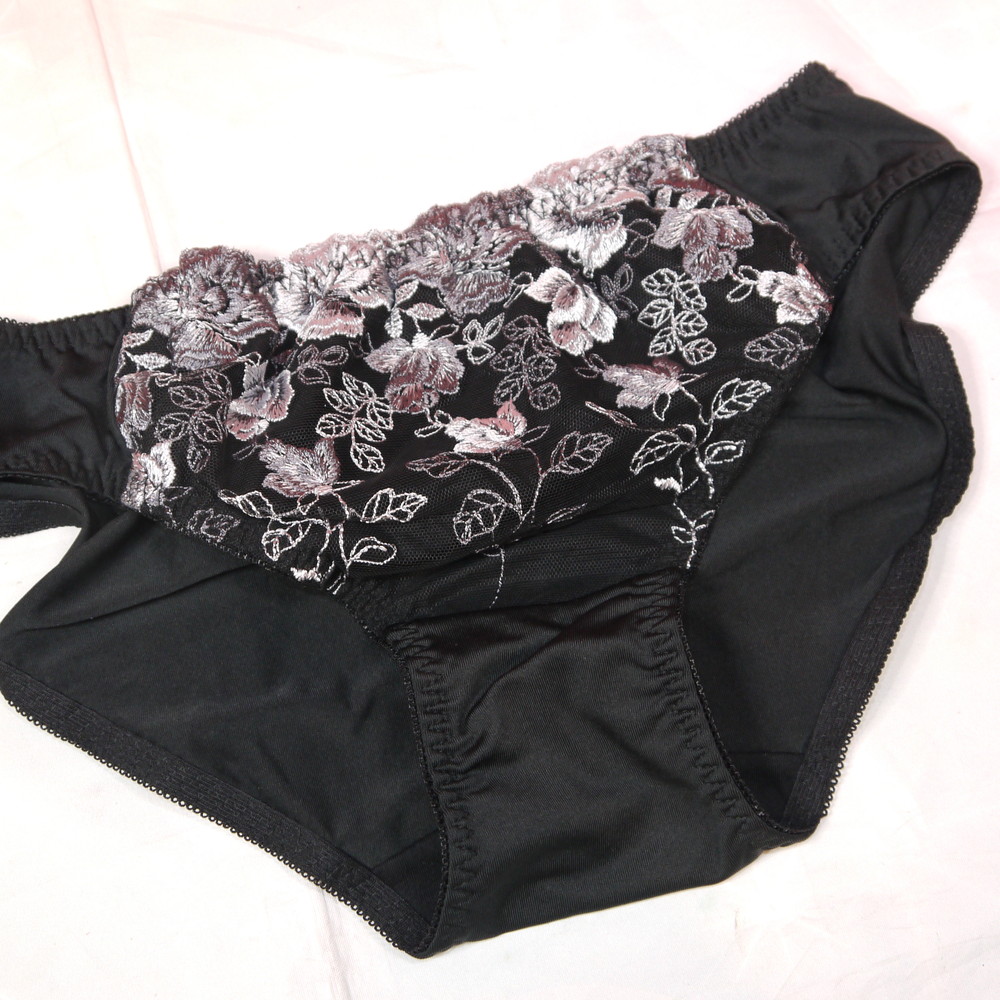 【ABランク/未使用?】エレーヌ:LLサイズ ★ 高級感の黒下着 豪華な花刺繍 メガ ショーツ