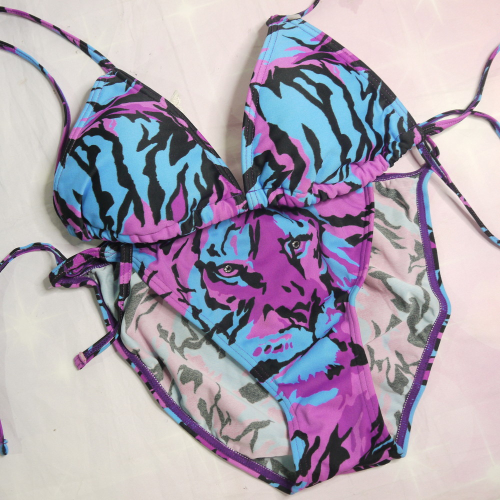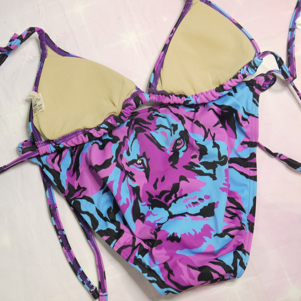 【Bランク/新古美品】日本ニット:9Mサイズ ★ ド派手紫×トラ柄 夏ギャル 三角ビキニ