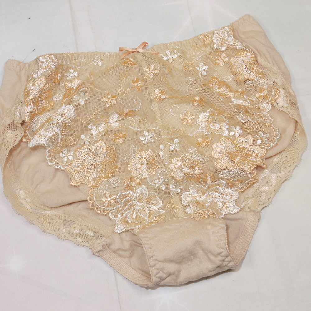 【Bランク/新古美品】ニッセン:Mサイズ ★ 大人ヌード×花刺繍 奥様系ショーツ