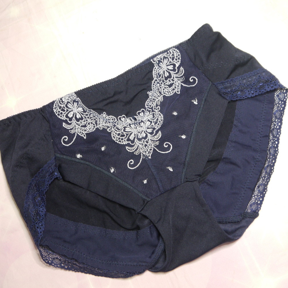【Bランク/新古美品】関西ファッション:Mサイズ ★ 高級感ネイビー×桜風刺繍 リフトアップショーツ