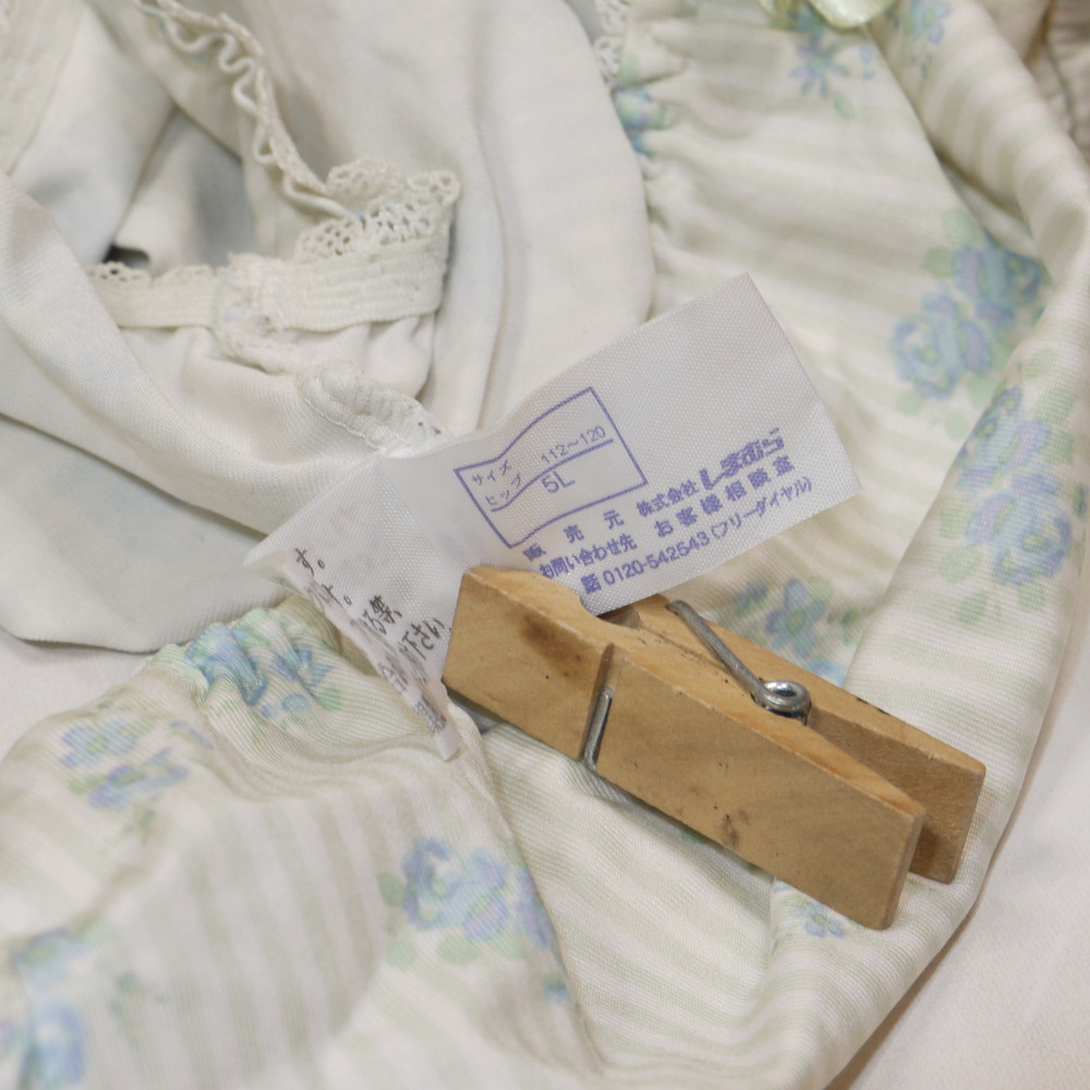 【Dランク/43+】しまむら:5Lサイズ ★ ライトグリーン×ヴィンテージお花柄 小薔薇 JCJKJD系? 肉感メガ ショーツ