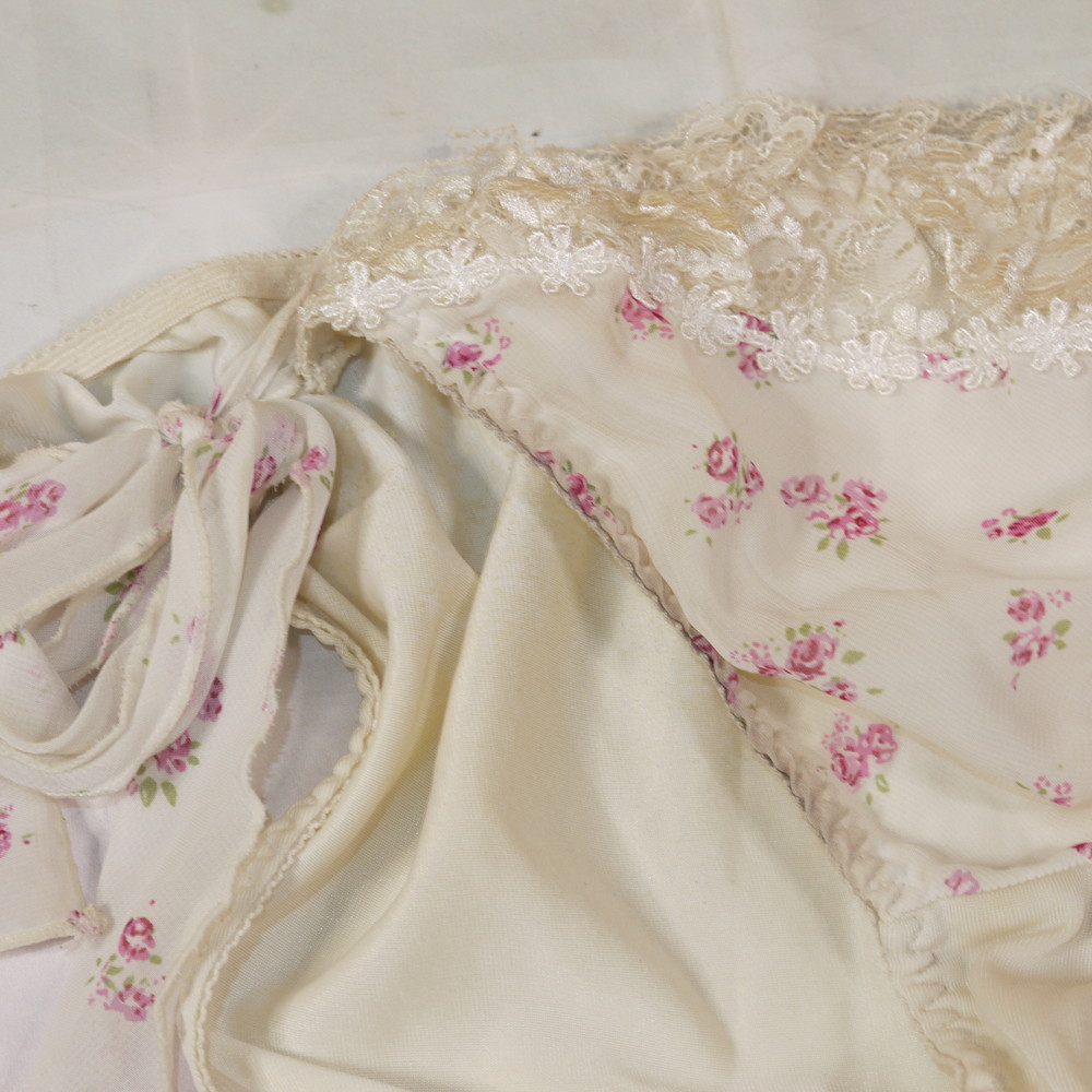 【CDランク/K43+】ニッセン:3L-4Lサイズ ★ 純粋感のアイボリー×小花 肉感メガ ぶりっ子キュート系 JCJK系 紐パンティ