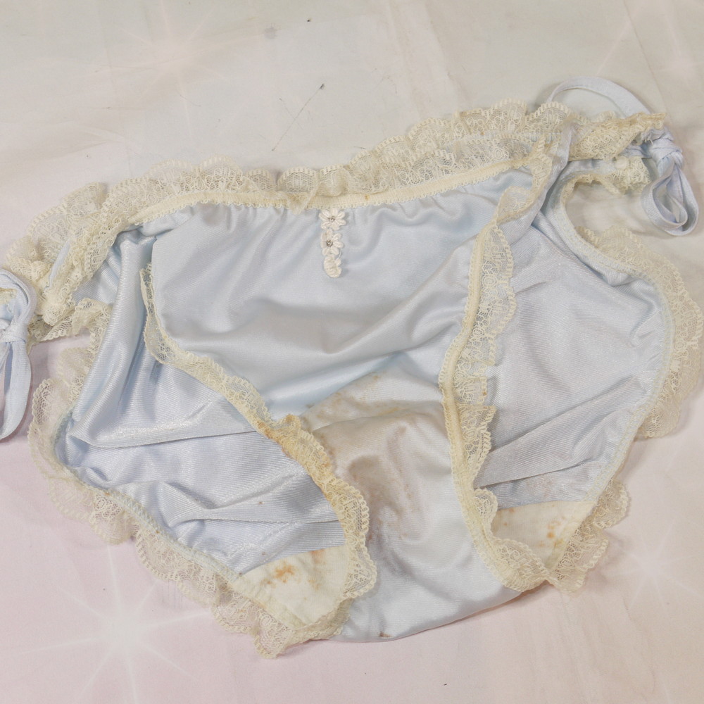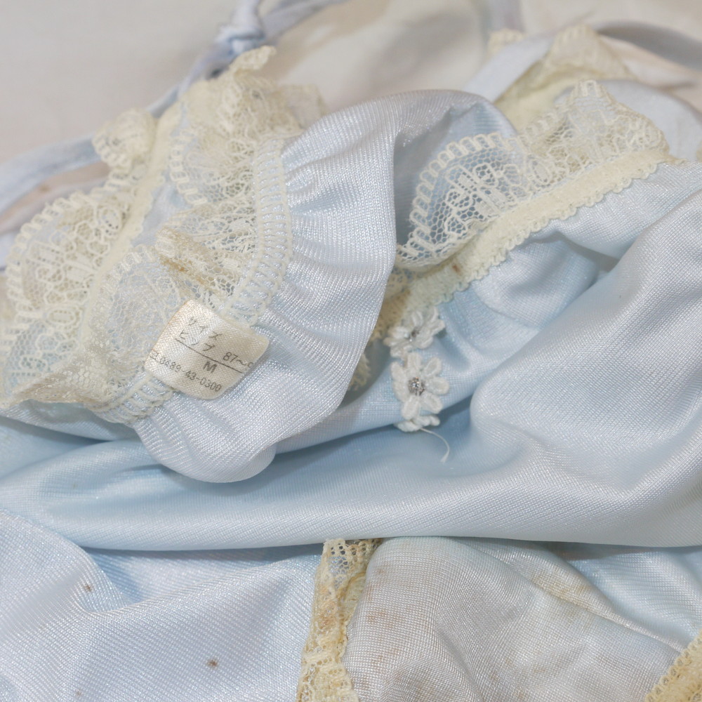 【CDランク/K43】:Mサイズ ★ 艶淡ブルー×フリル レトロで可愛い紐パンティ