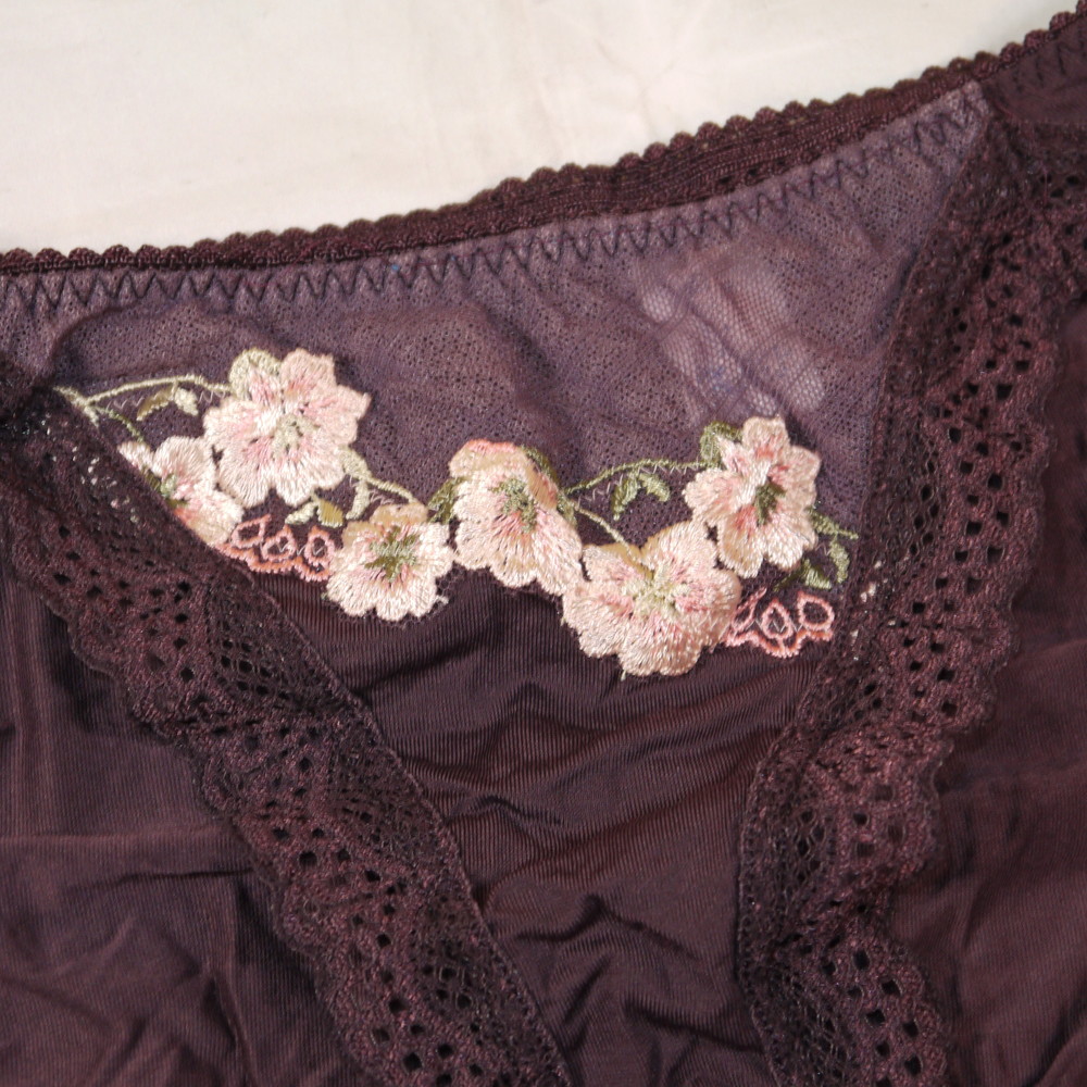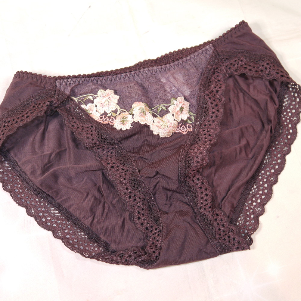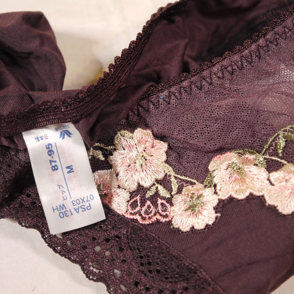 【Bランク/新古美品】ワコール:Mサイズ ★ 高級感の深紫 桜刺繍? ショーツ