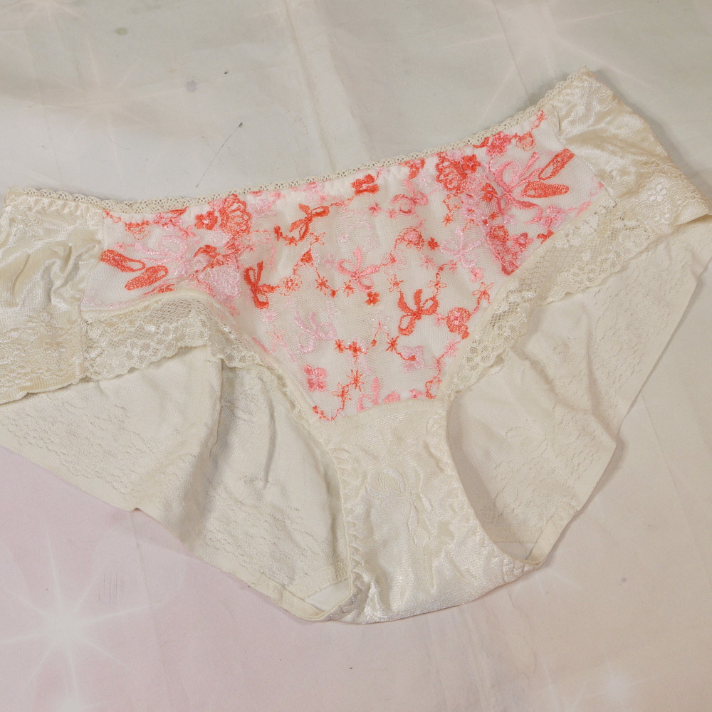 【BCランク/K43-】トリンプ:Mサイズ ★ 清楚感のオフホワ×リボン刺繍 ショーツ