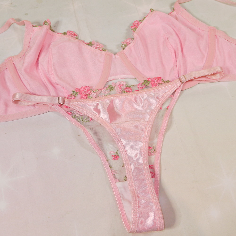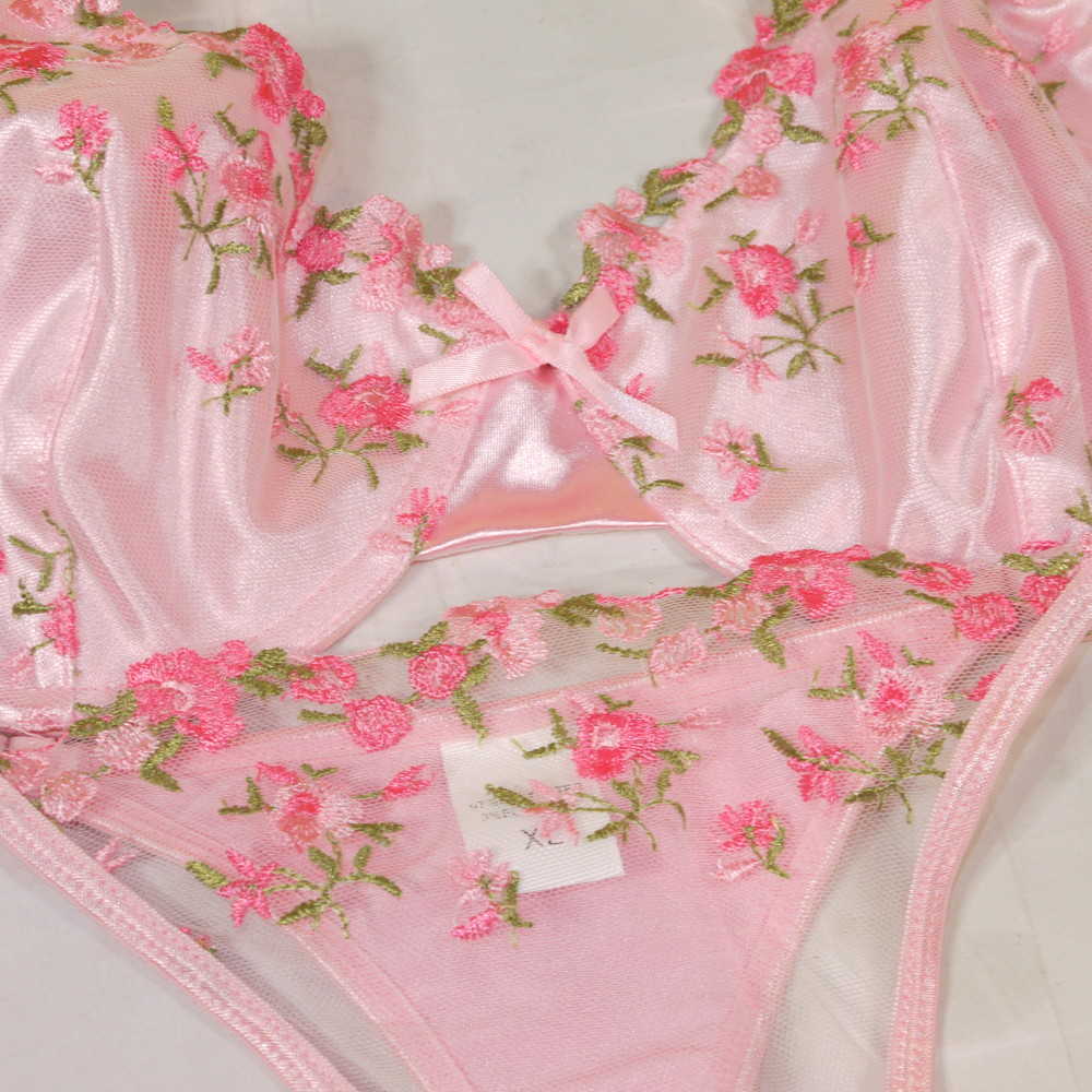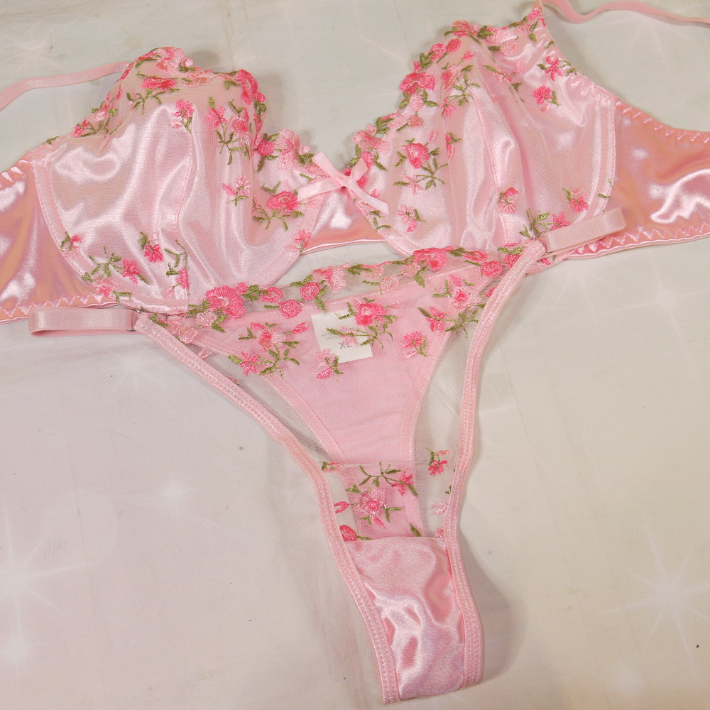 【ABランク/未使用?】:XL:EFカップ程 ★ シルク調の甘とろ感光沢×小花 フロント透けSEXY T グラマー PBセット