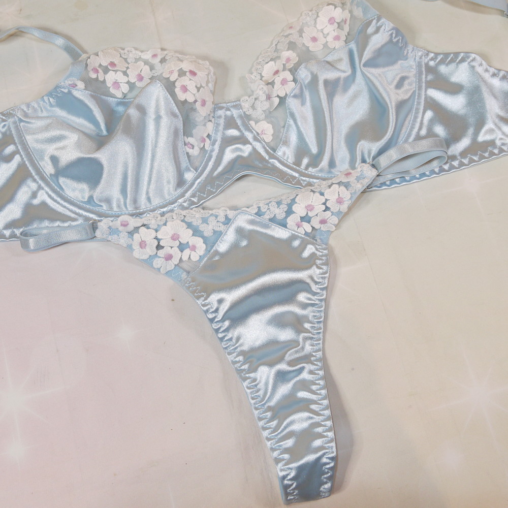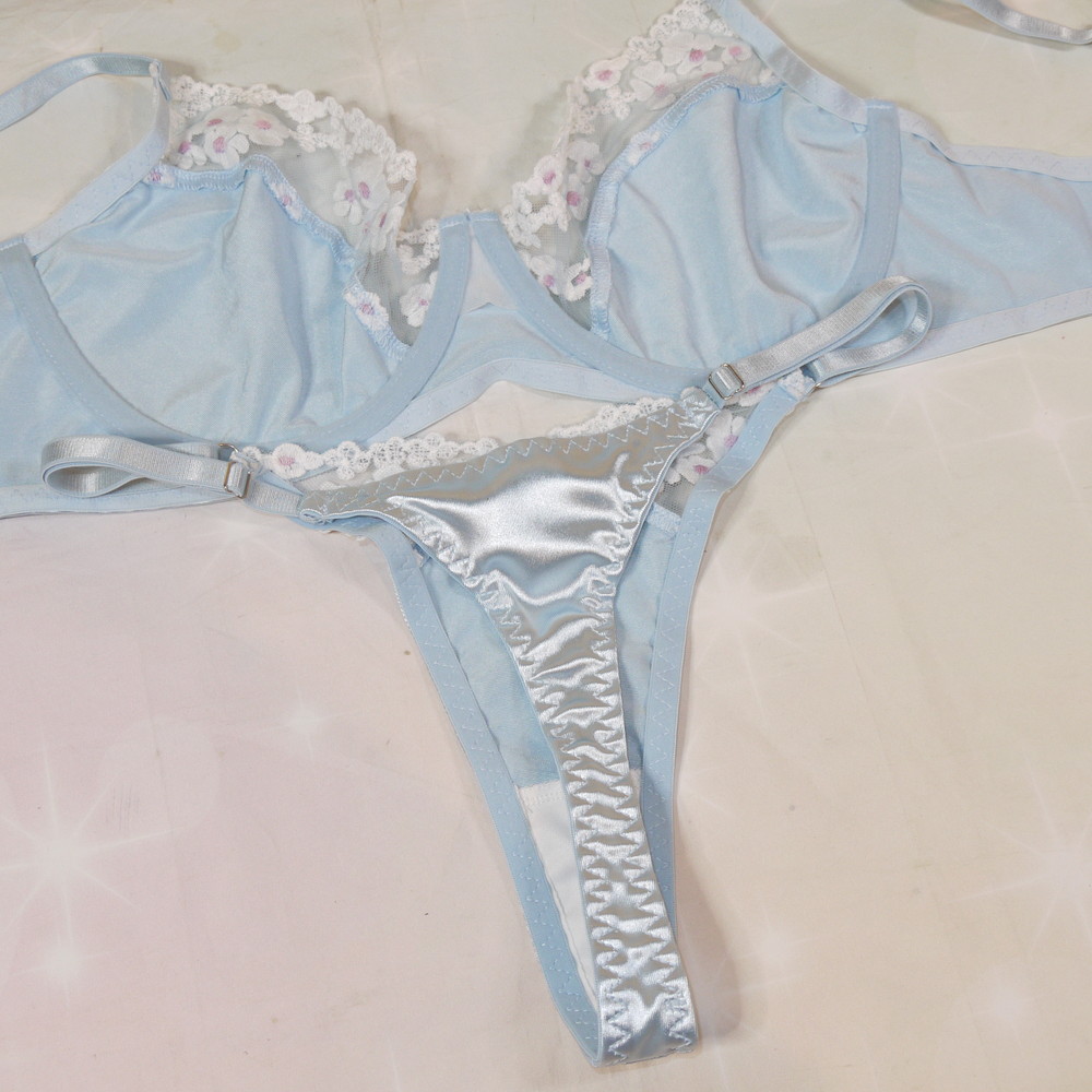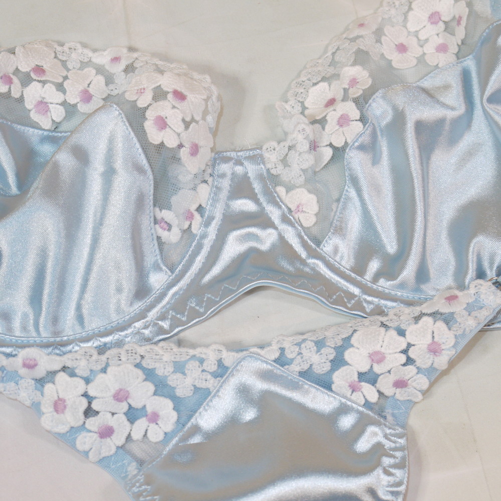 【ABランク/未使用?】:XL:EFカップ程 ★ シルク素材調の極上甘とろ感 レトロ花刺繍 爆乳 T PBセット