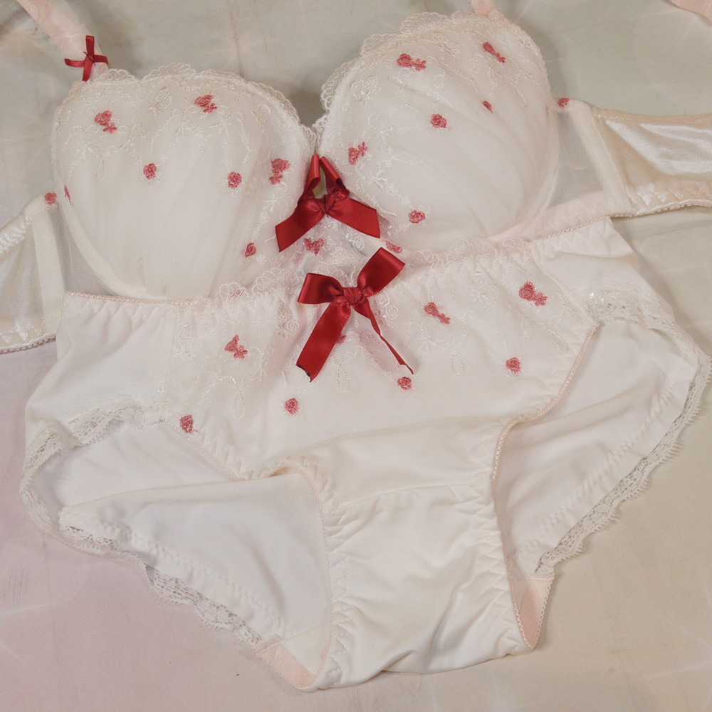 【Bランク/新古美品】したぎ:75B Mサイズ ★ ロリっとキュートな白 ヴィンテージ小薔薇 JCJK系 PBセット