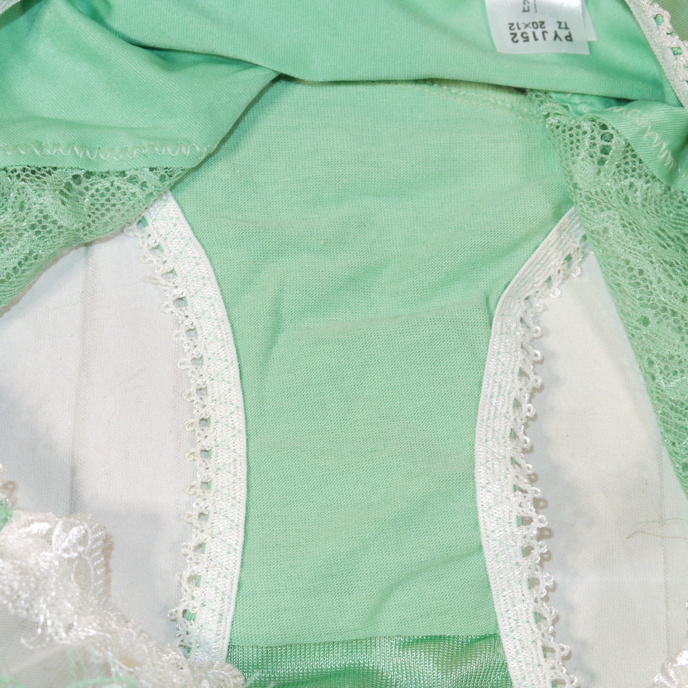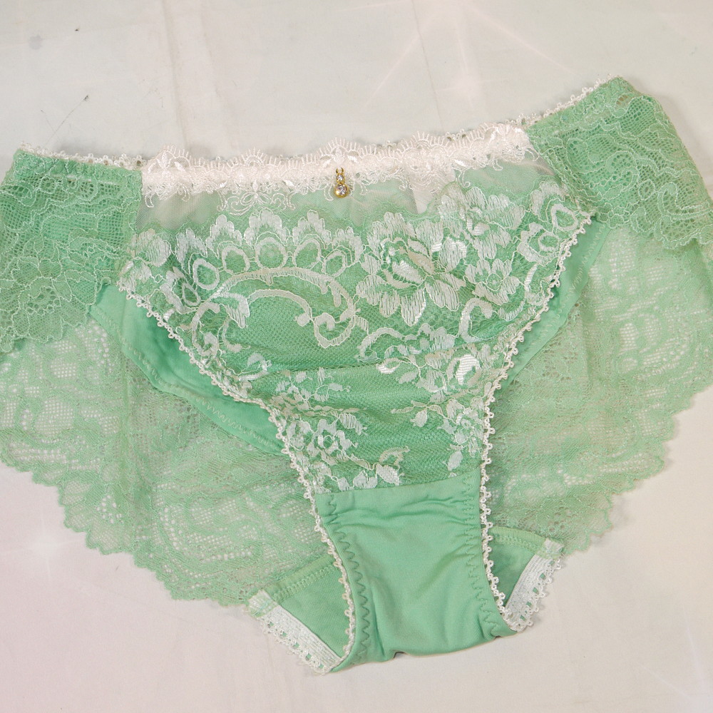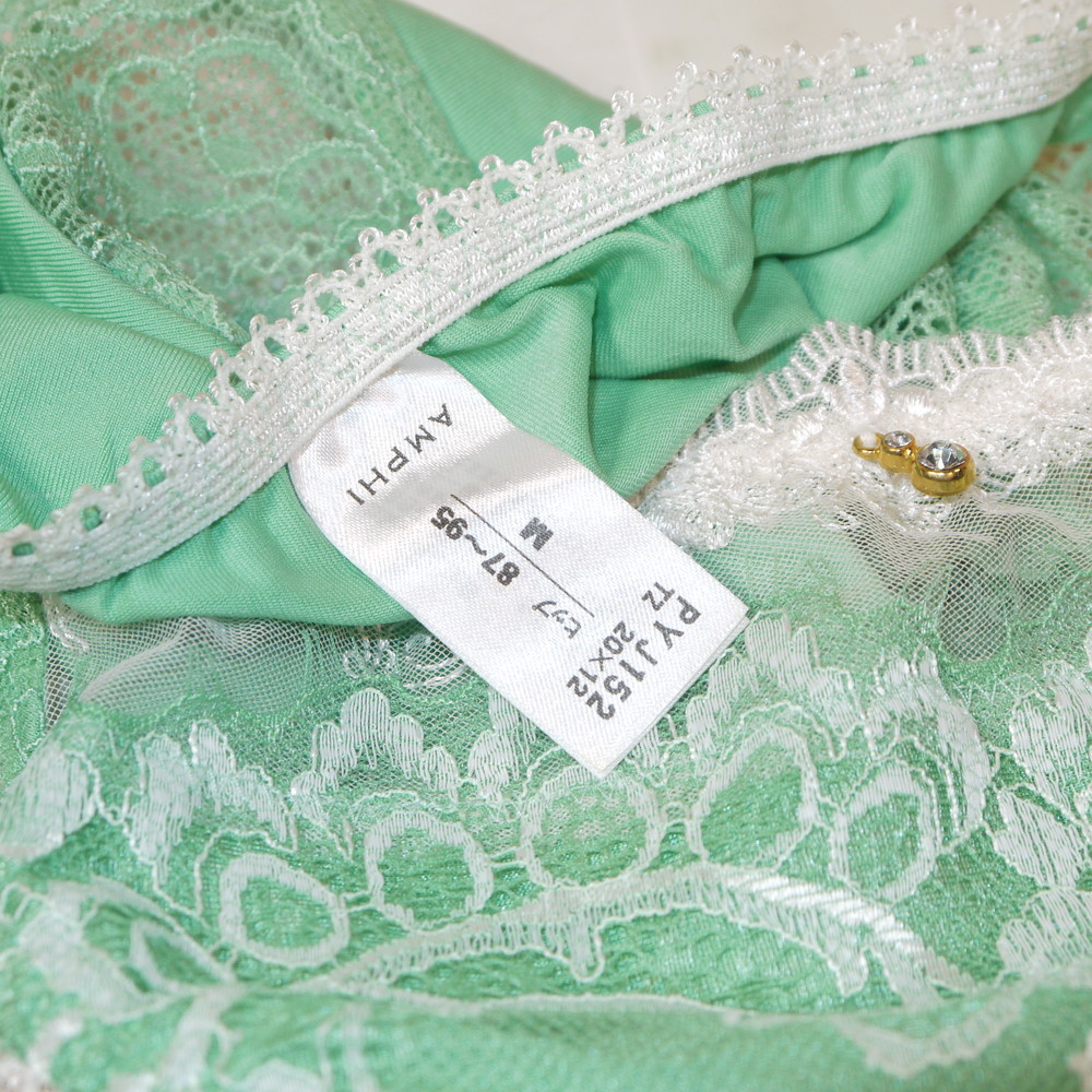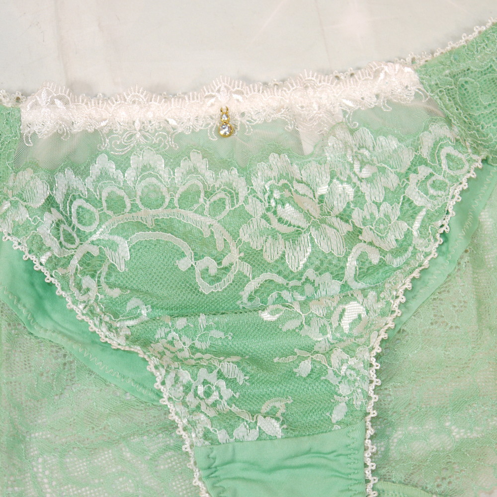 【Bランク/新古美品】ワコール:Mサイズ ★ AMPHI!小麦肌に超似合うグリーン 高級感レース刺繍 お嬢様系ショーツ
