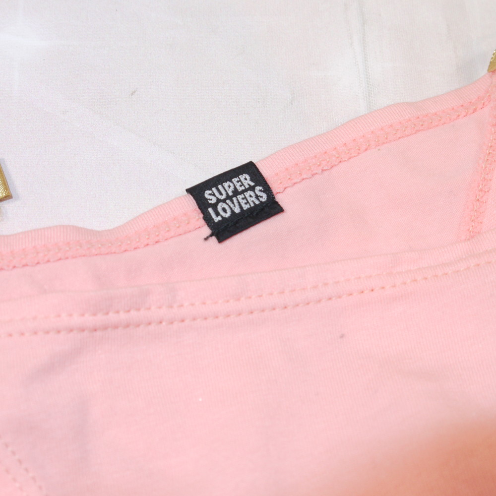 【Bランク/新古美品】SUPER LOVERS:MLサイズ程 ★ 平成ギャル系 黒肌に超似合うサーモン×金リボン T