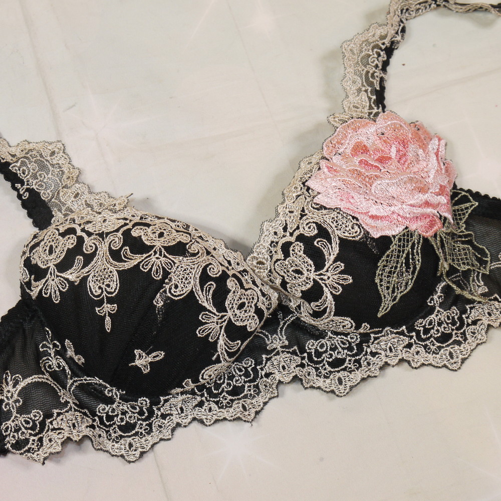 【Bランク/新古美品】サルート 03G:B65*78 ★ 廃盤希少!高級感の黒×金リーフ刺繍 大輪薔薇アップリケ ブラ