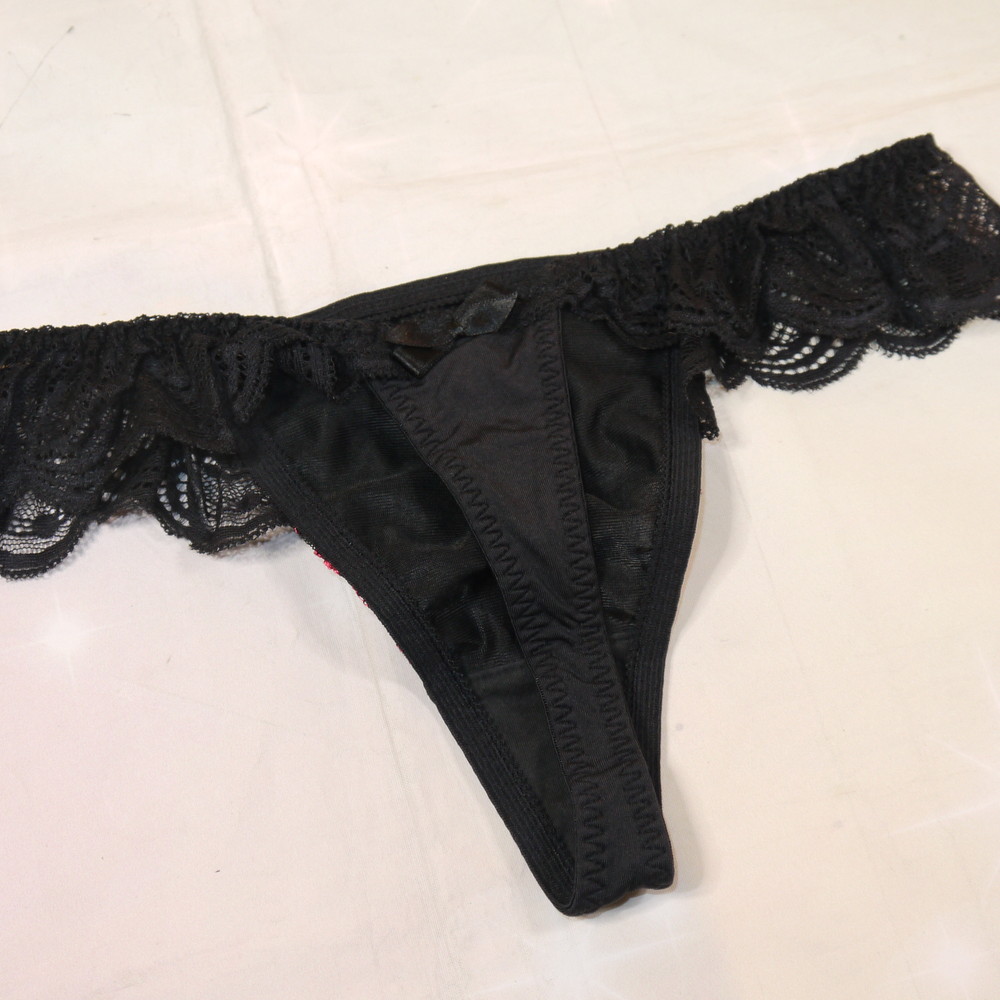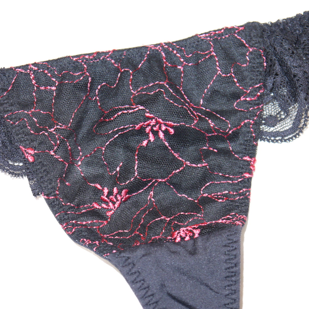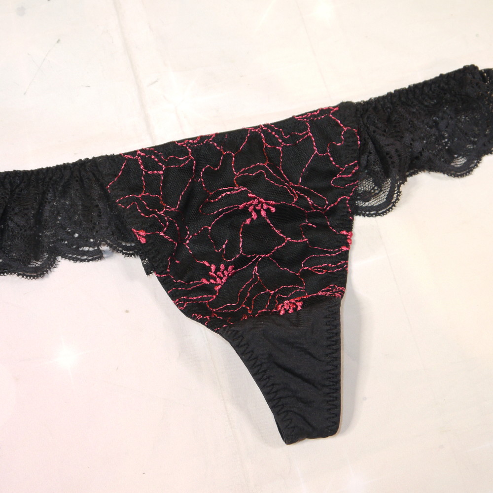 【Bランク/新古美品】ワコール:Mサイズ ★ お姉様な黒ランジェ 花刺繍 Tショーツ
