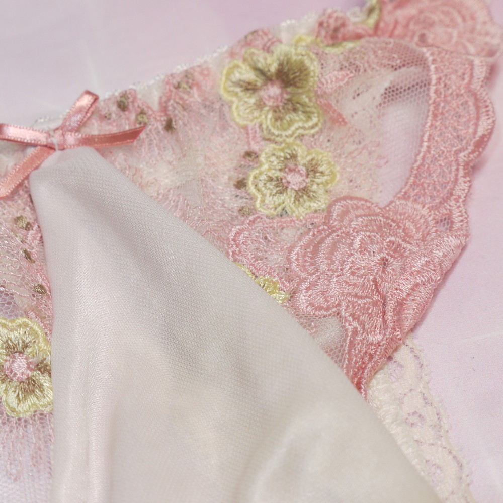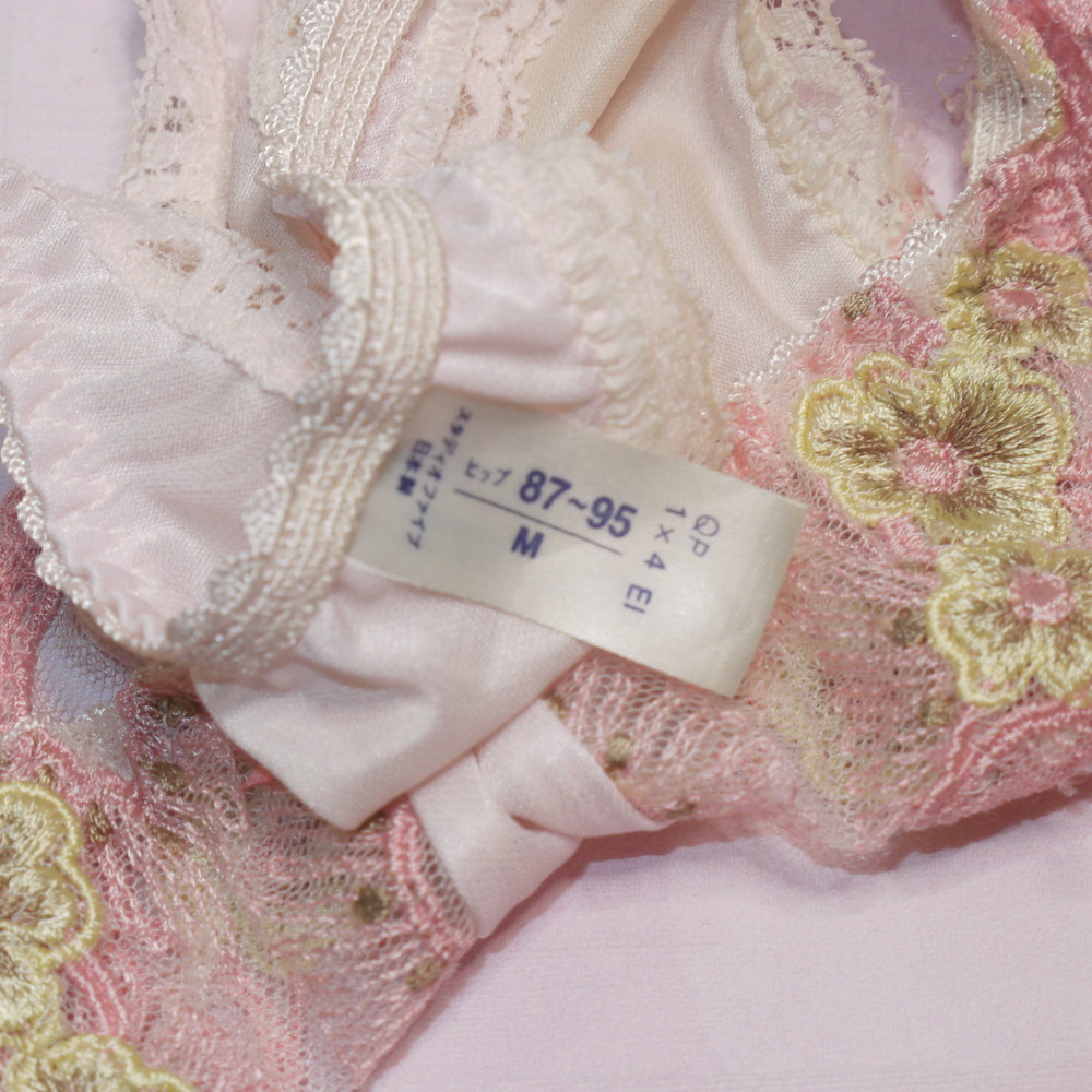 【Cランク/K43】スタディオファイブ:Mサイズ ★ 清楚感のライトピンク×サイド花レース 食い込みMAX Tショーツ