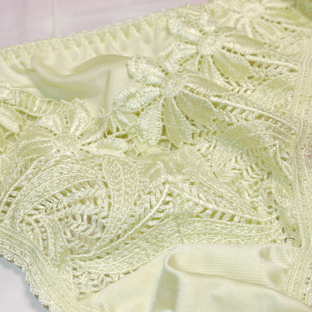 【ABランク/未使用?】スタディオファイブ:Mサイズ ★ 純粋感溢れる淡グリーン 厚手花レース刺繍 Tショーツ