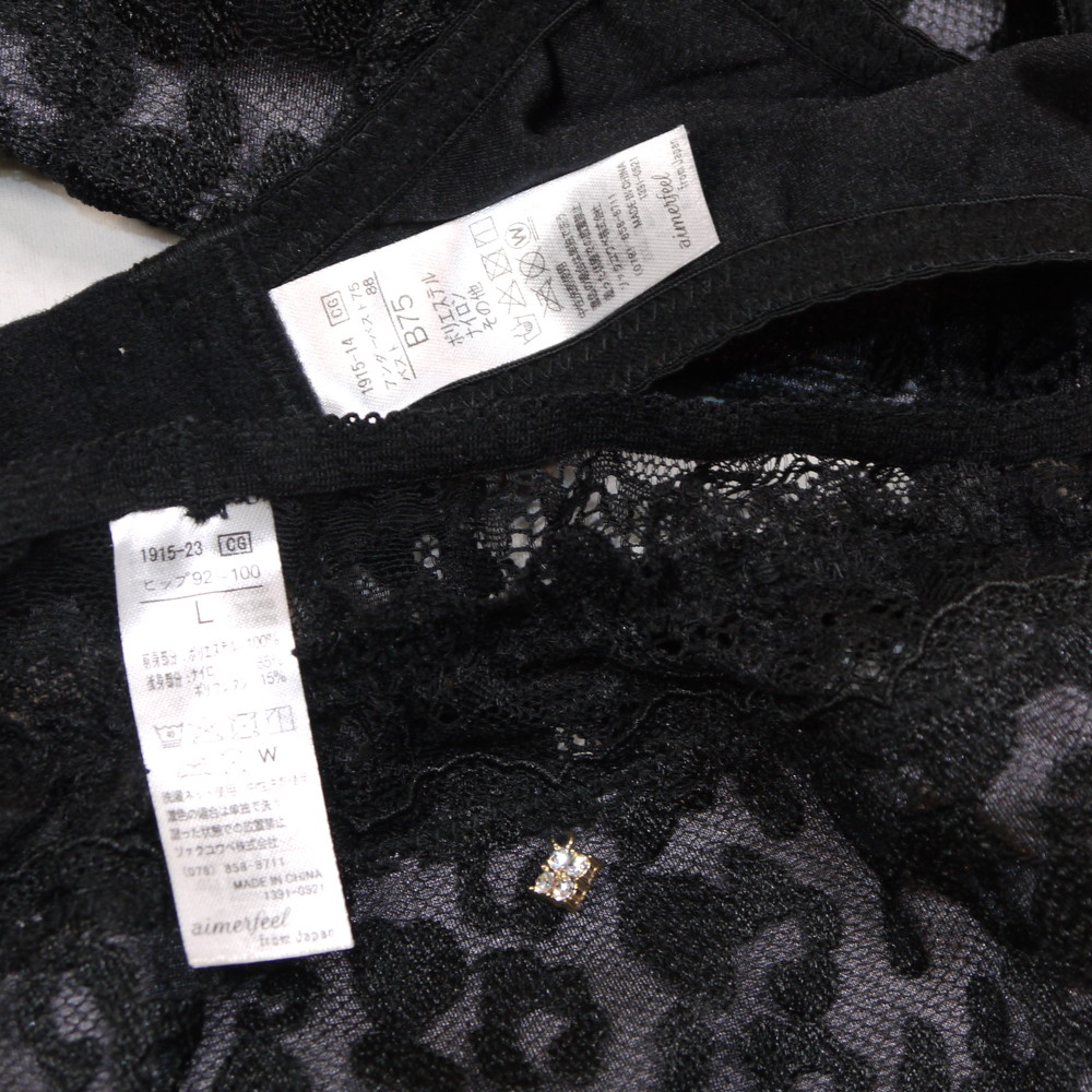 【ABランク/未使用?】エメフィール:B75*88 Lサイズ ★ 痴女感むんむんの豹レース グレー 悩殺T お姉様系ランジェ PBセット