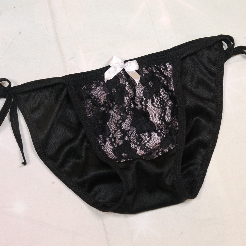 【Bランク/新古美品】:Mサイズ程 ★ 姫かわ黒×フロントレース 小さくて可愛い紐パンティ